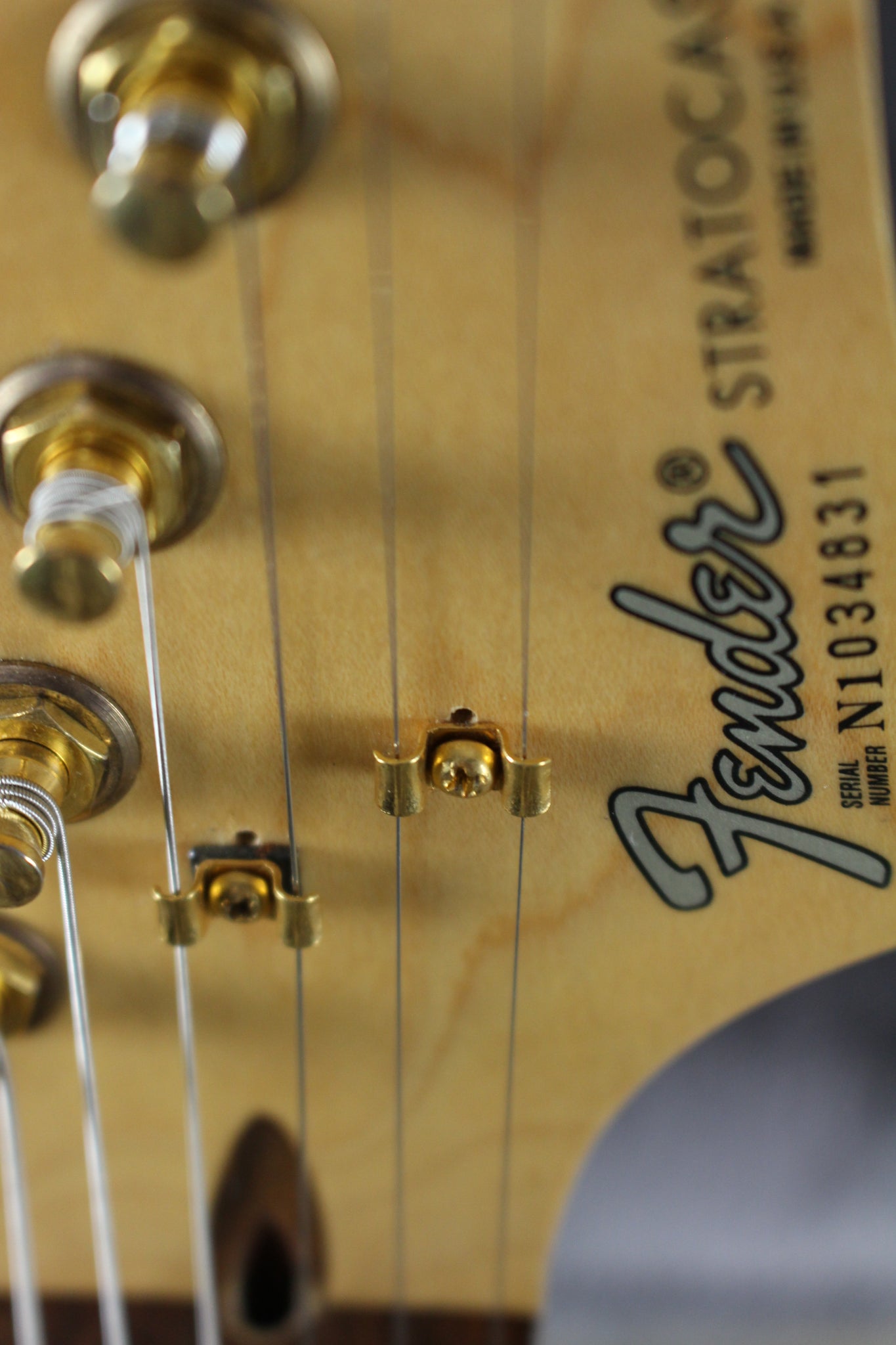 Pickups/Hardware: Lace Sensor pickups, Fender tuning keys, synchronized tremolo bridge, white plastic knobs, bone nut.
