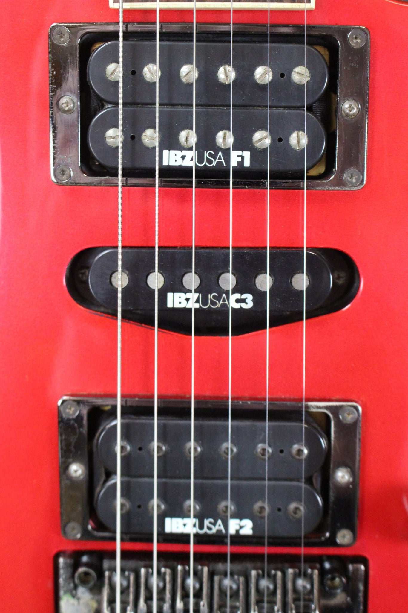 Pickups/Hardware: Ibanez DiMarzio F1/C3/F2 pickups, Gotoh tuning keys, Lo-Pro Edge double locking tremolo bridge, with trem arm, black knobs, Top-Lok III locking nut.