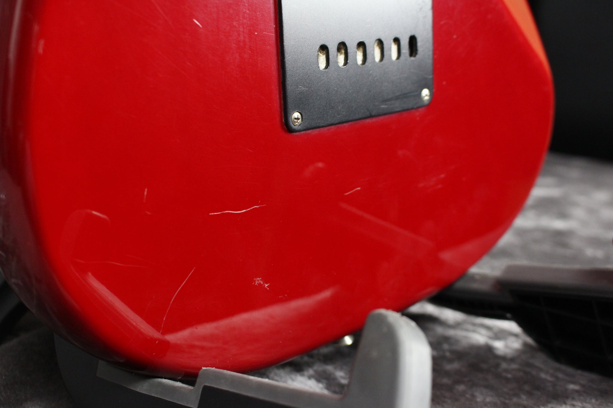 Cosmetics: This guitar is in great shape. It has light surface scratches and small indentations on the body. The back of the neck has one slight indentation, not affecting playability, and the frets show minimal wear. The back has light buckle rash. Overall, this guitar plays very well and sounds fantastic.
