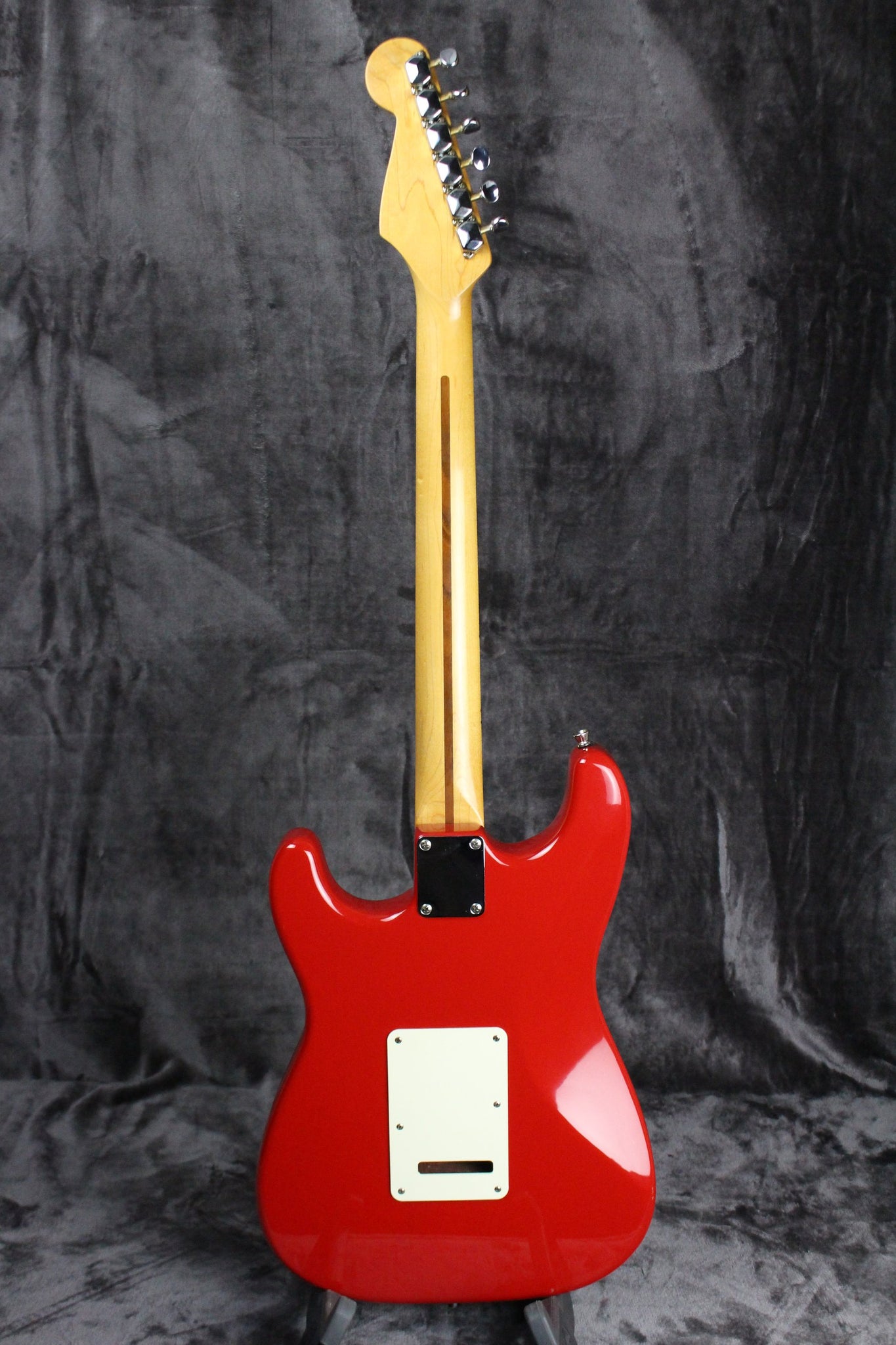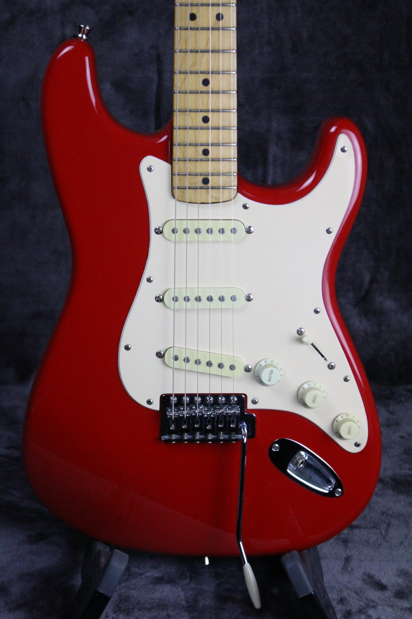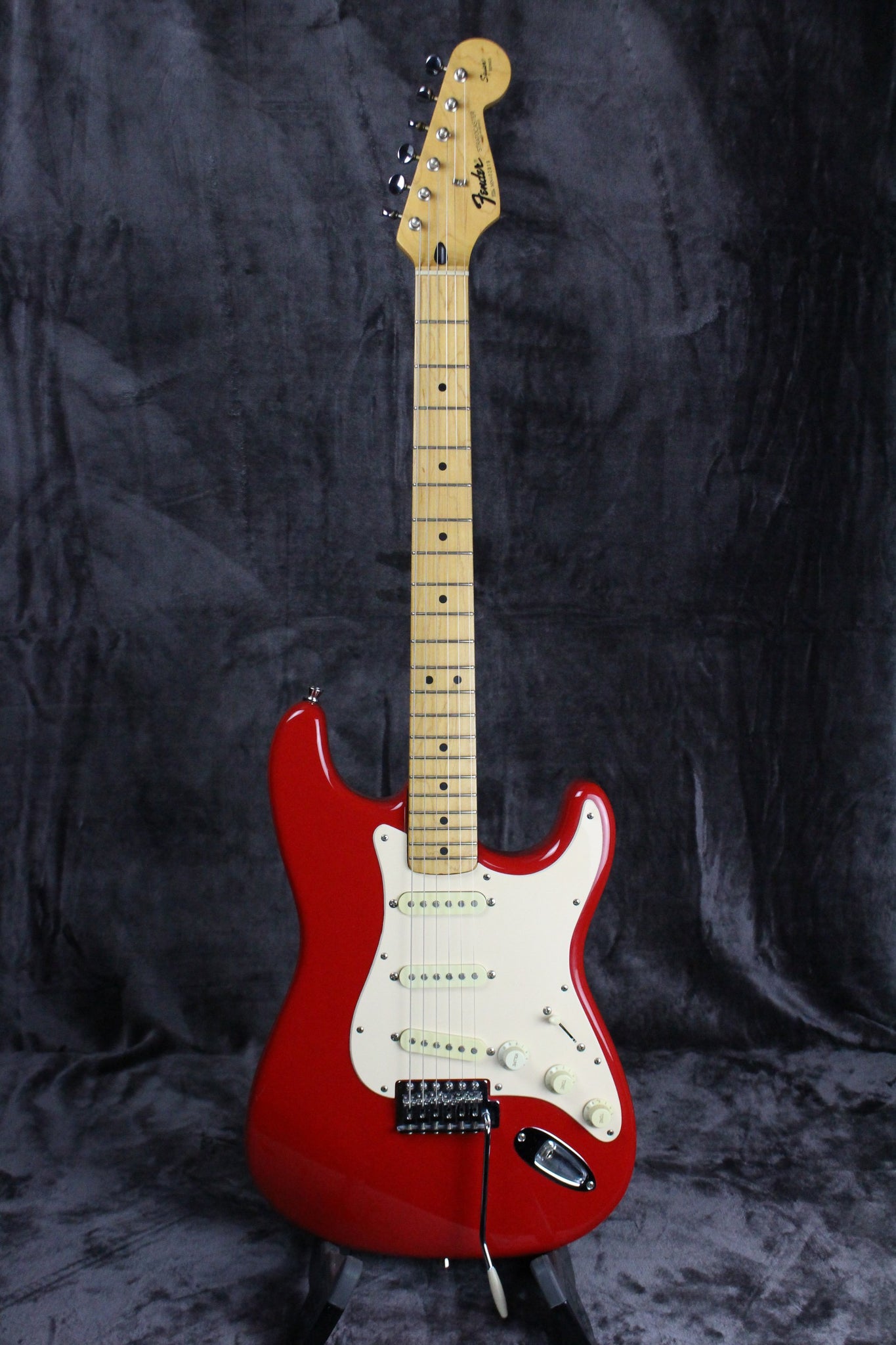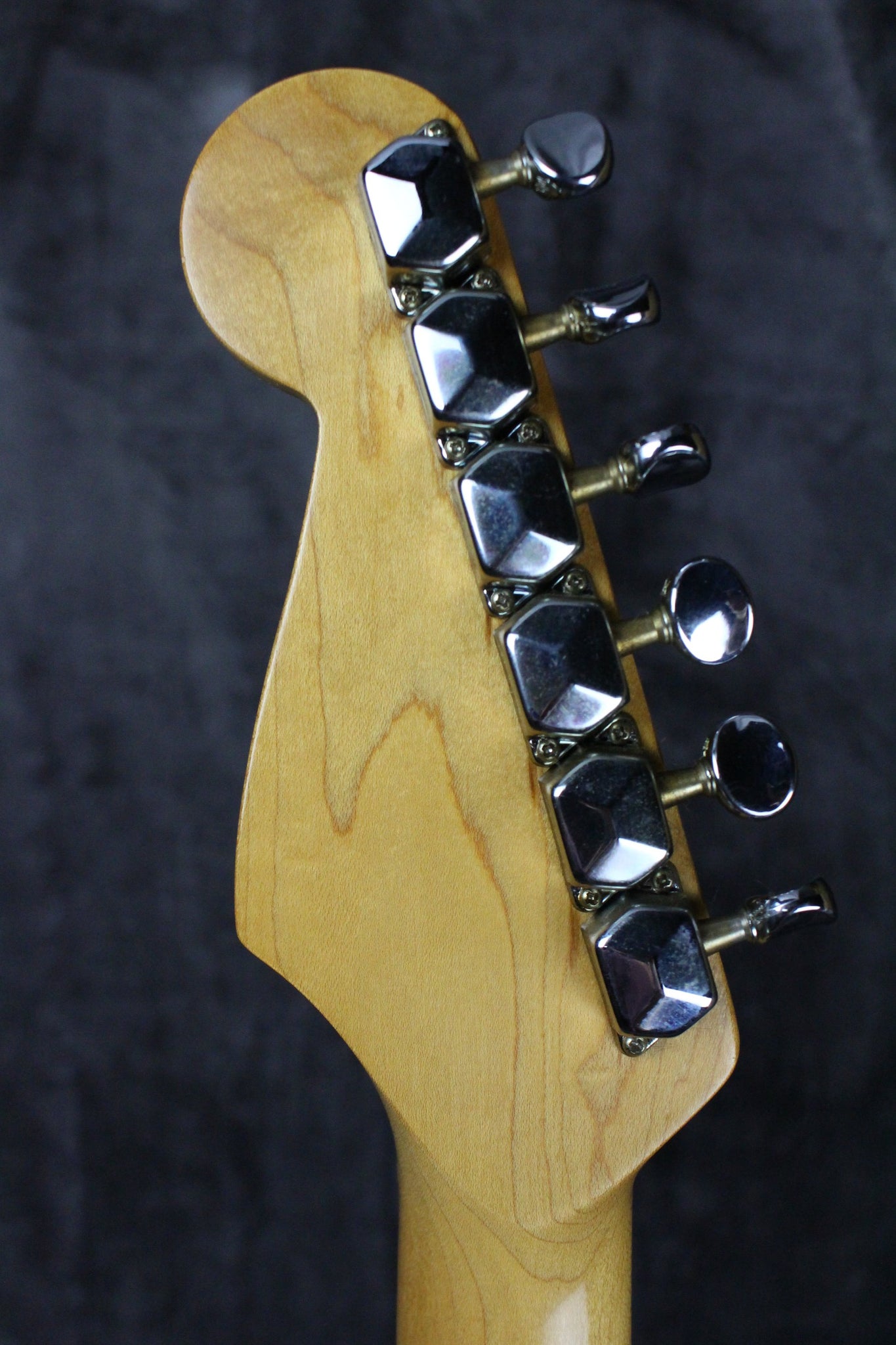 Pickups/Hardware: Three single coil pickups, master volume/two tone controls/5-way pickup selector, closed gear tuning keys, 6-saddle bridge, white single-ply pickguard, cream pickup covers/control knobs.