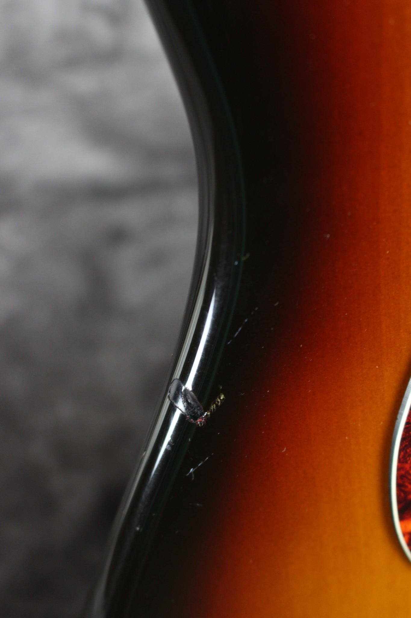 Cosmetics: This guitar is in great shape. It has light surface scratches on the body, dents and chips, some real honest wear and real relicing. This instrument has been rewired, and routed for a humbucker in the bridge. The back of the neck is clean, and the frets show minimal wear. The back has light buckle rash. Overall, this guitar plays very well and sounds fantastic.