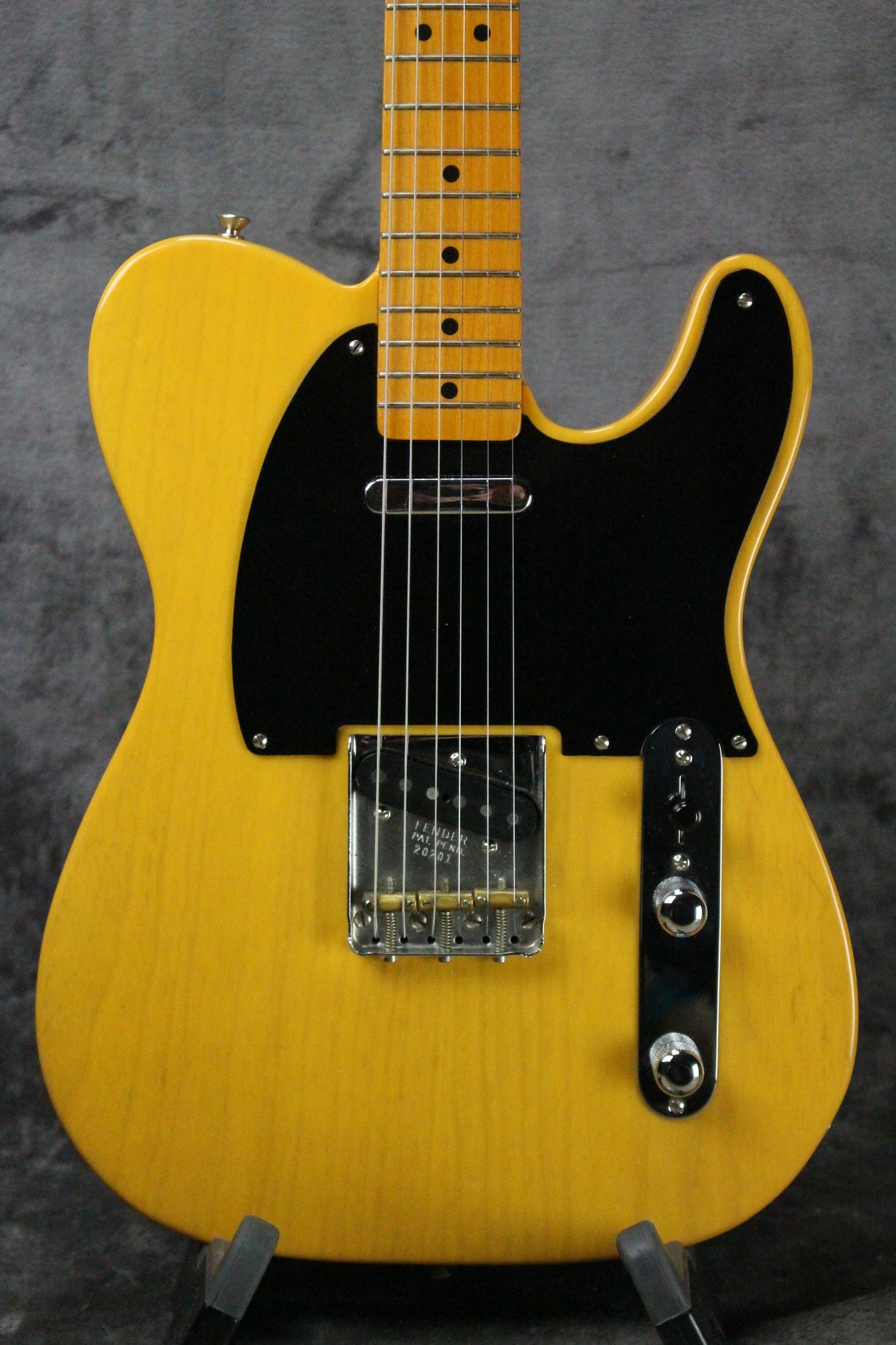 Summary: The Fender ‘52 Telecaster Reissue represents the ‘final’ form of the early Telecaster, and only minor changes followed for the next several years. The body is Ash, with a Maple neck and rear-mounted truss rod with Walnut ‘Skunk Stripe’ and body-end adjuster. The pickguard is a single layer black, and all the screws are Slot Head instead of the later Phillips head screws. The serial number is stamped onto the bridge plate, and in 1954 that location was changed to the neck plate. The finish is nitrocellulose lacquer, tinted to reproduce the natural darkening of the clear finish over a thin ‘blonde’ coat. This Fender ‘52 Telecaster reissue is in overall great shape, fret wear is minor, and the guitar plays well – it’s resonant and responsive with great tone.