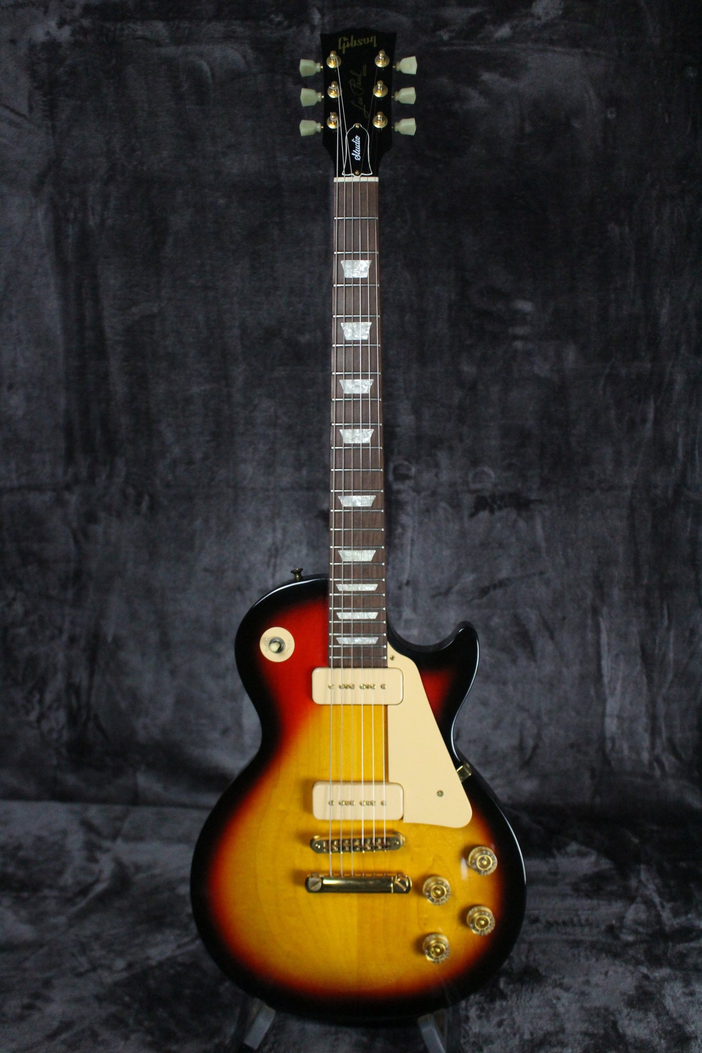 Pickups/Hardware: Two Gibson P90 pickups, gold hardware, Gibson Deluxe keystone tuning keys, cream plastics, gold speed knobs, Studio truss rod cover.