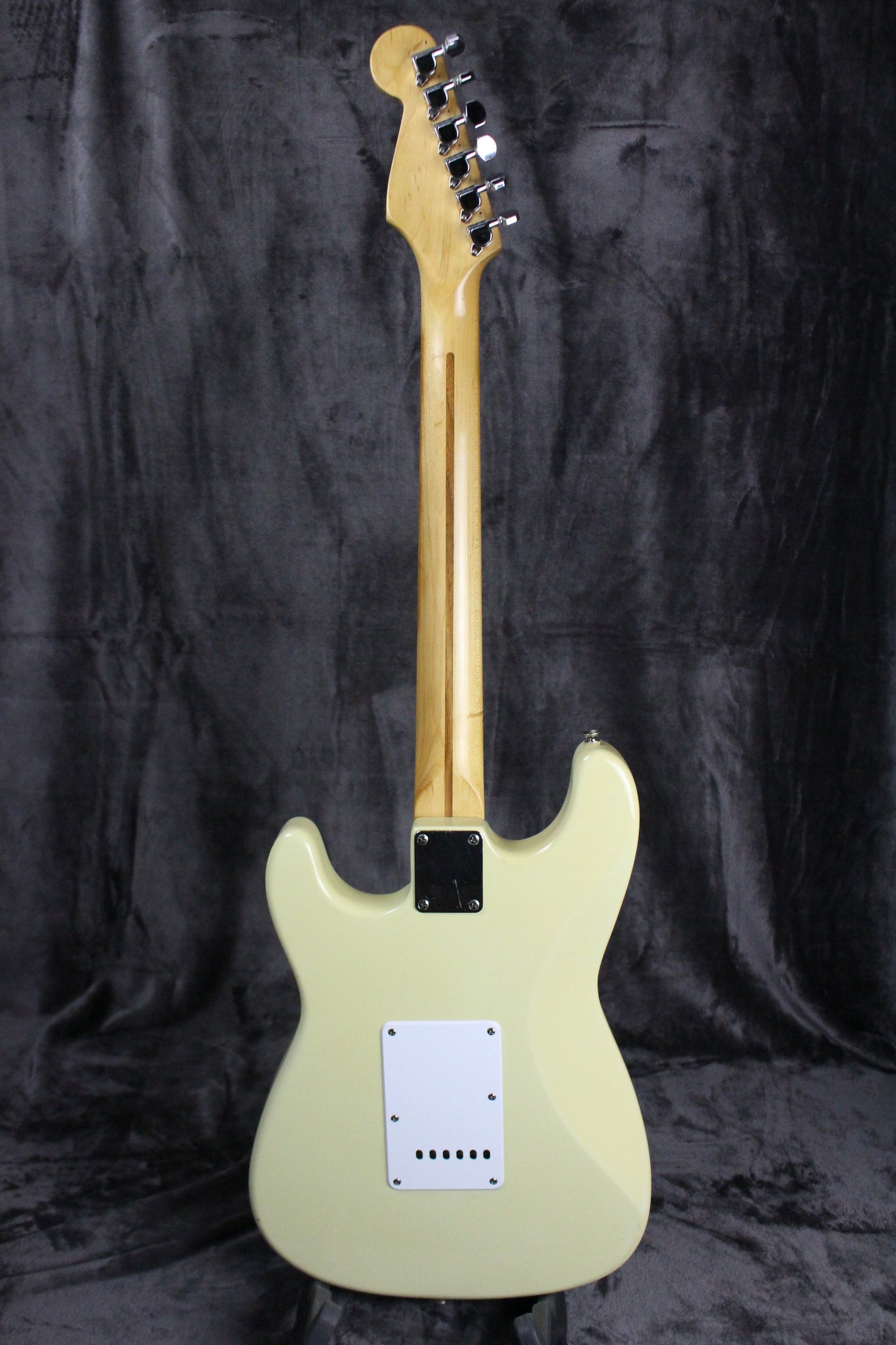 Pickups/Hardware: Three single coil pickups, master volume/two tone controls/5-way pickup selector, closed gear tuning keys, 6-saddle bridge, white single-ply pickguard, cream pickup covers/control knobs.