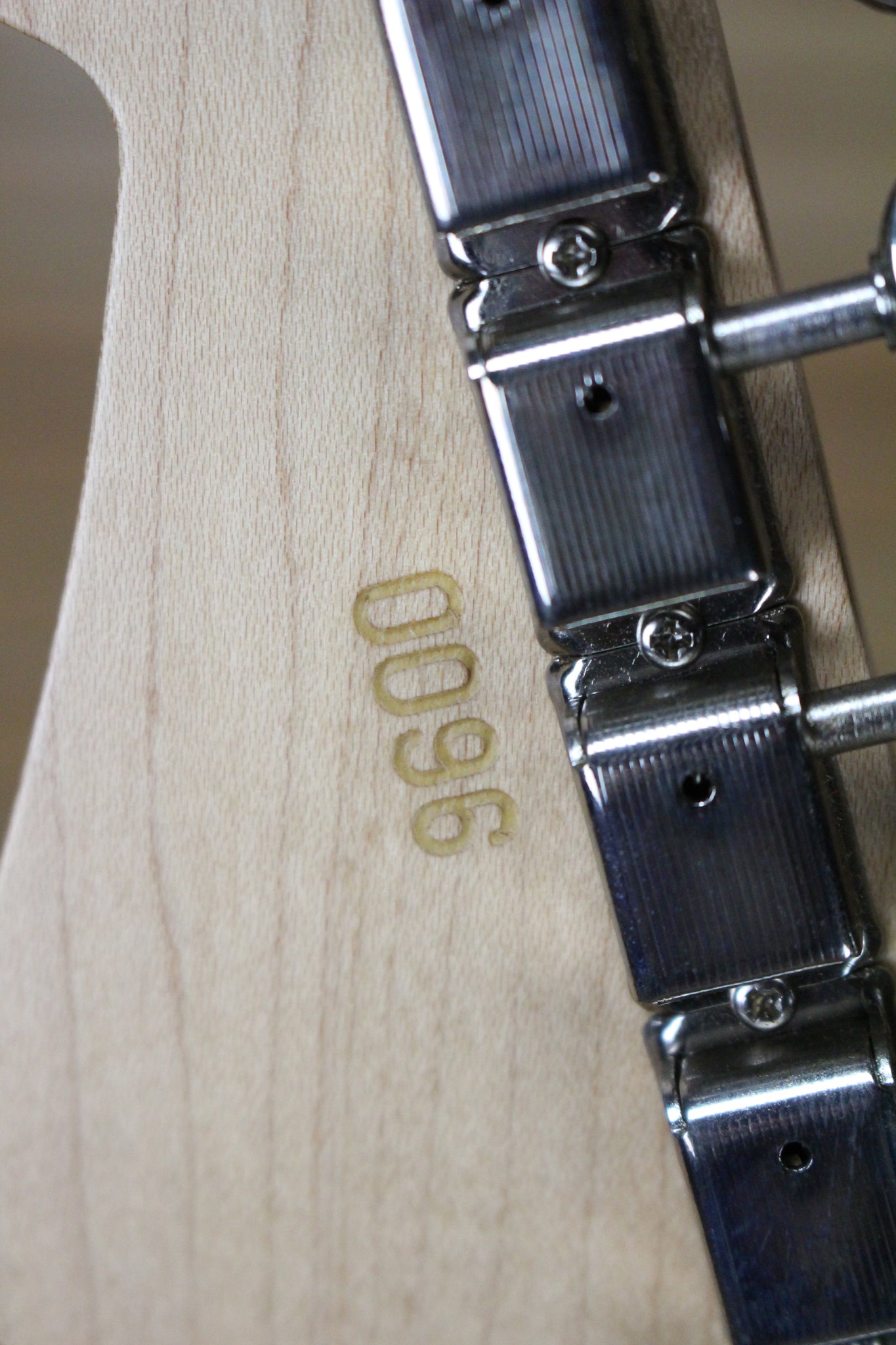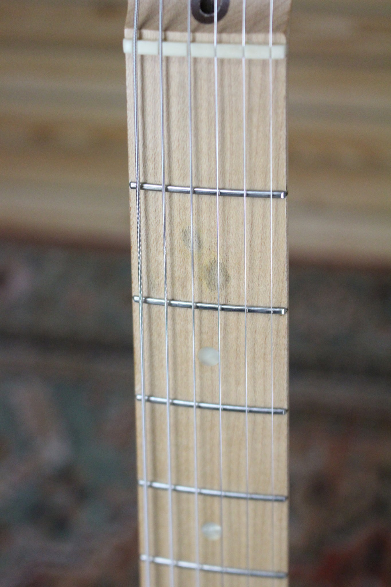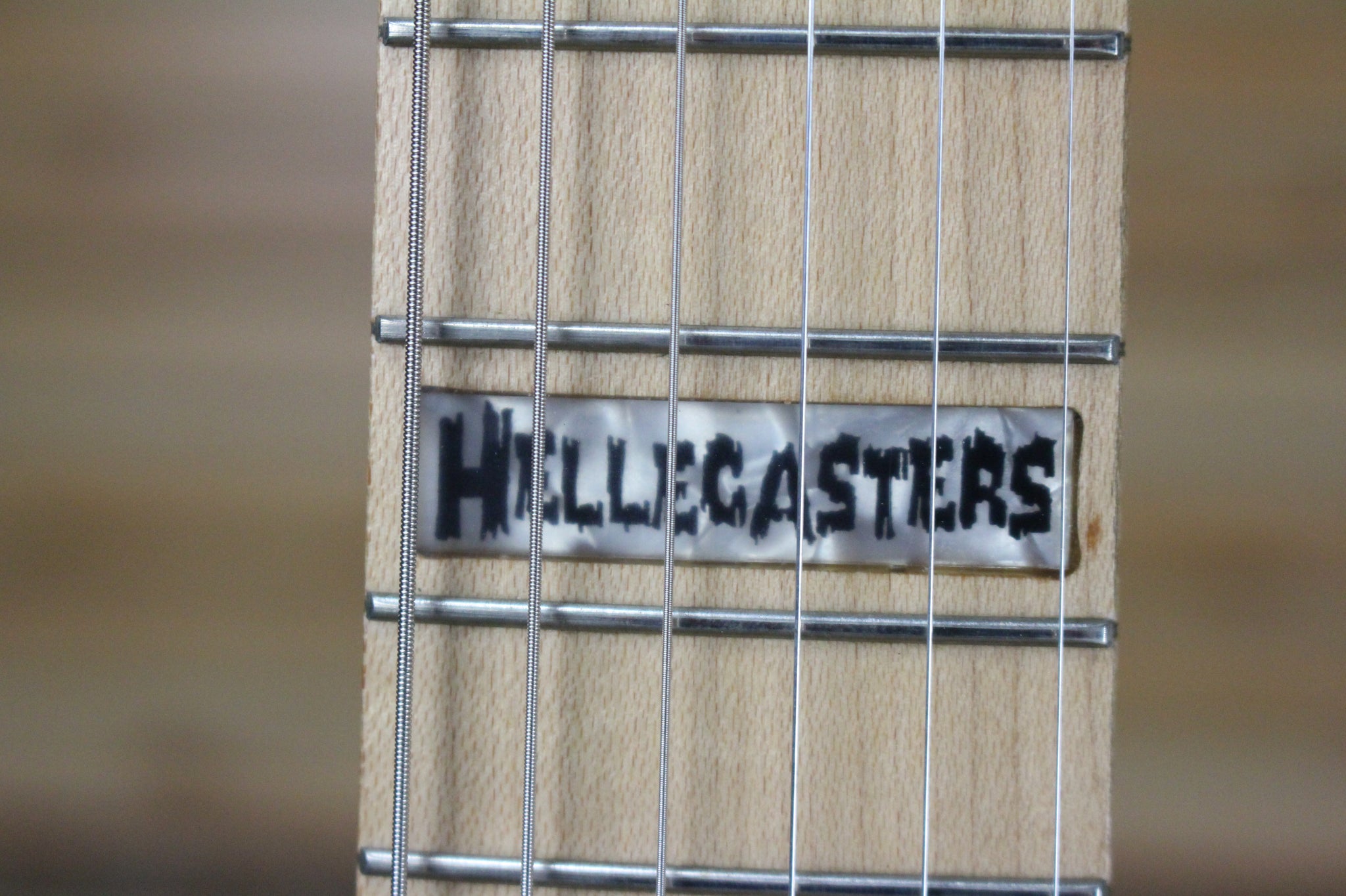 Neck: Maple with a Maple fingerboard, 25.5” scale length, 1.65” nut width, 21 frets, pearloid dot inlays with Hellcasters inlay at the 12th fret.