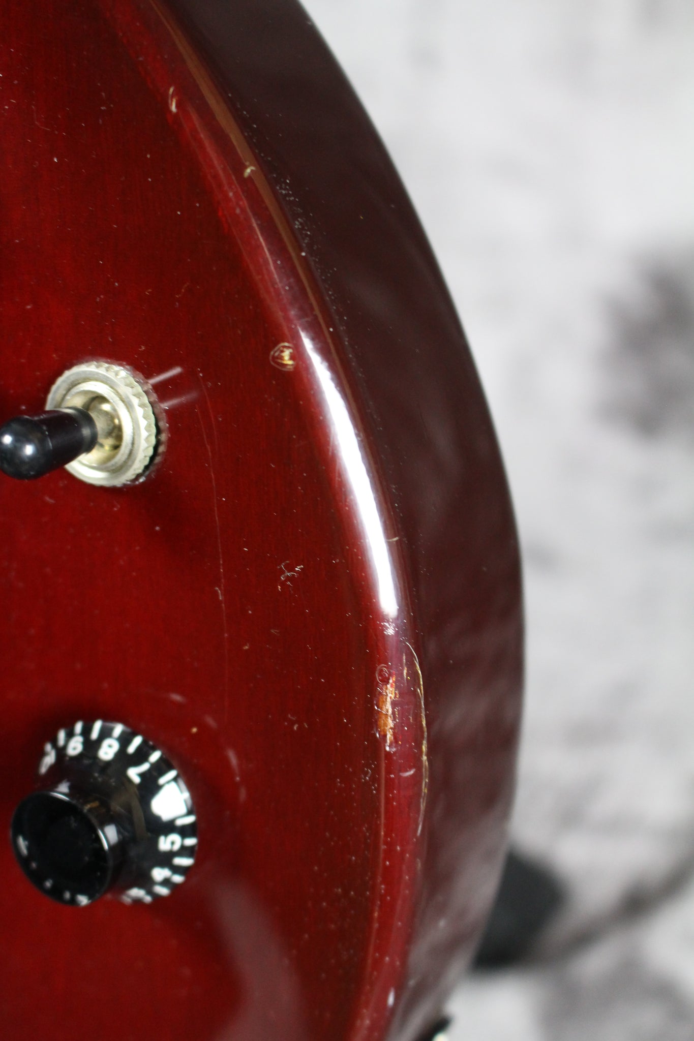 Summary: This 1997 Gibson All American II was part of of short lived series of guitars that were made in Nashville from 1996-1998! This instrument has two single coil pickups, 24 frets & a very wonderful & unique tone. It was inspired by the original Melody Maker, but differed from it in having chrome tuners, no pickguard, controls rear-mounted in the traditional Gibson solid-body style, and a bridge/vibrola unit.