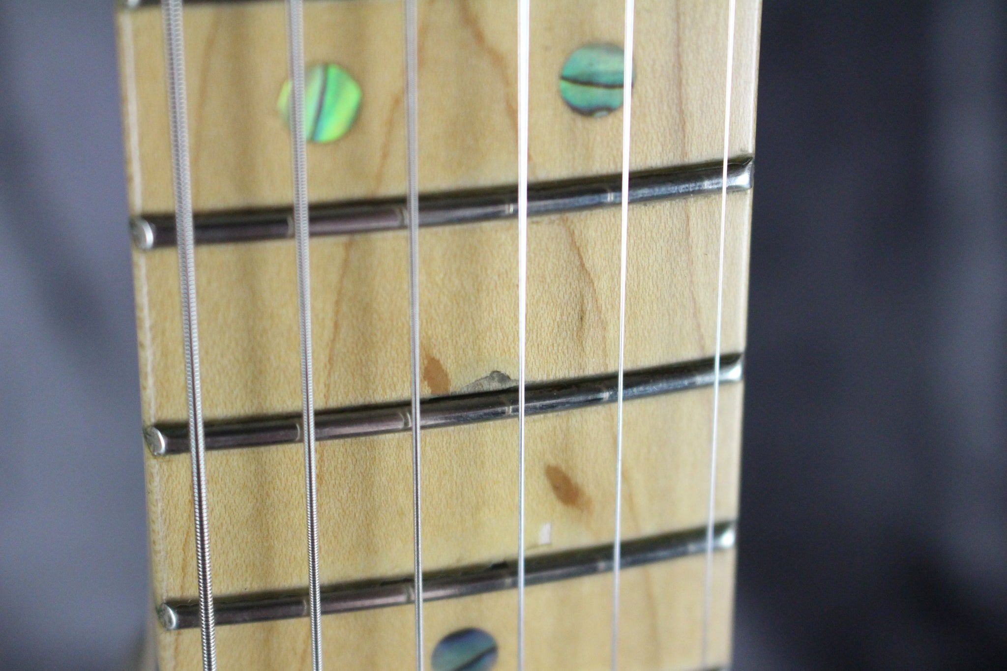 Neck: Maple with a Maple fingerboard, 25.5” scale length, 1.68” nut width, 22 frets, Abalone Dot inlays.