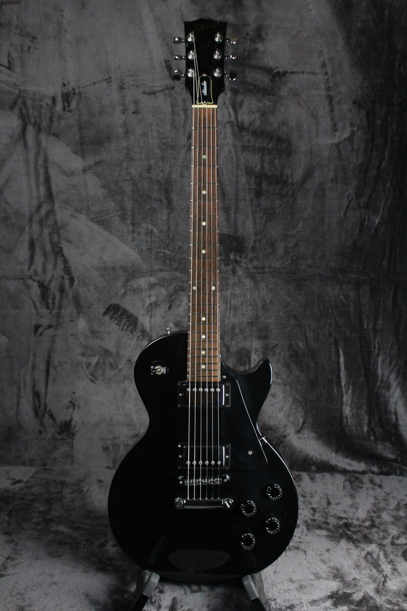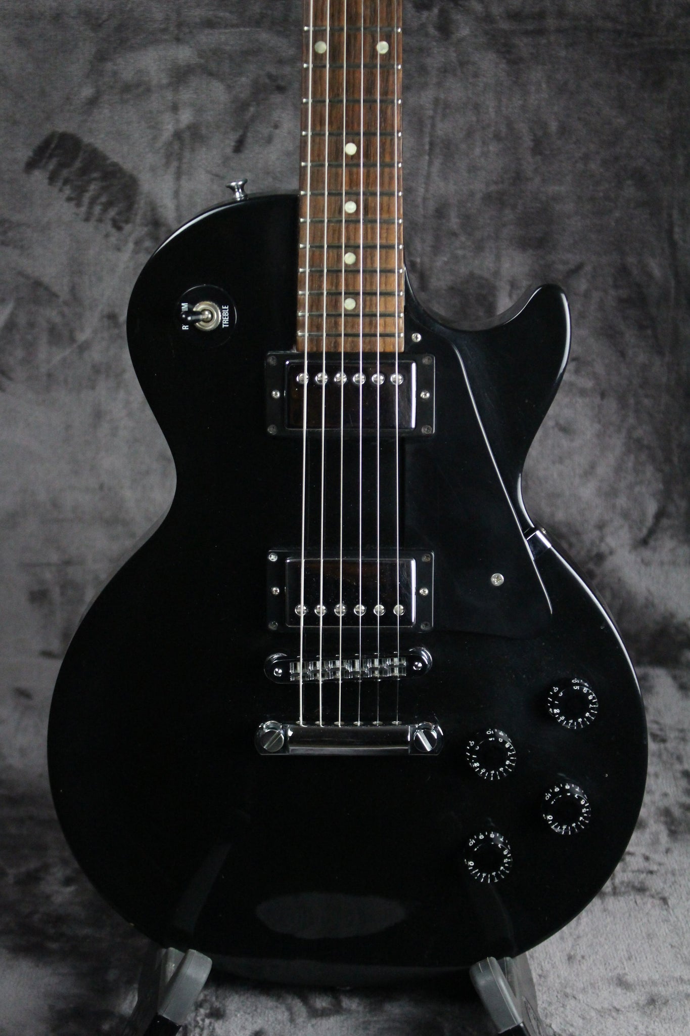 Body: Mahogany with a Maple top finished in a gloss Ebony finish.