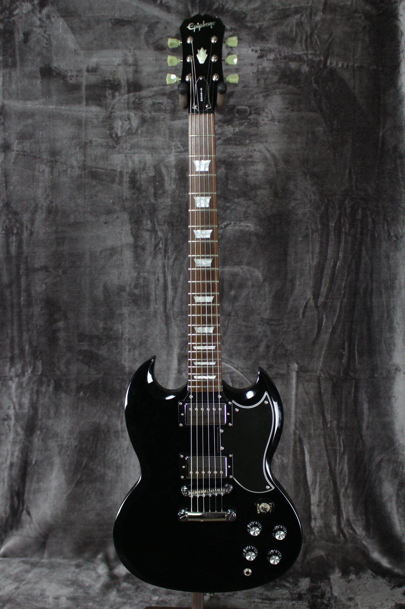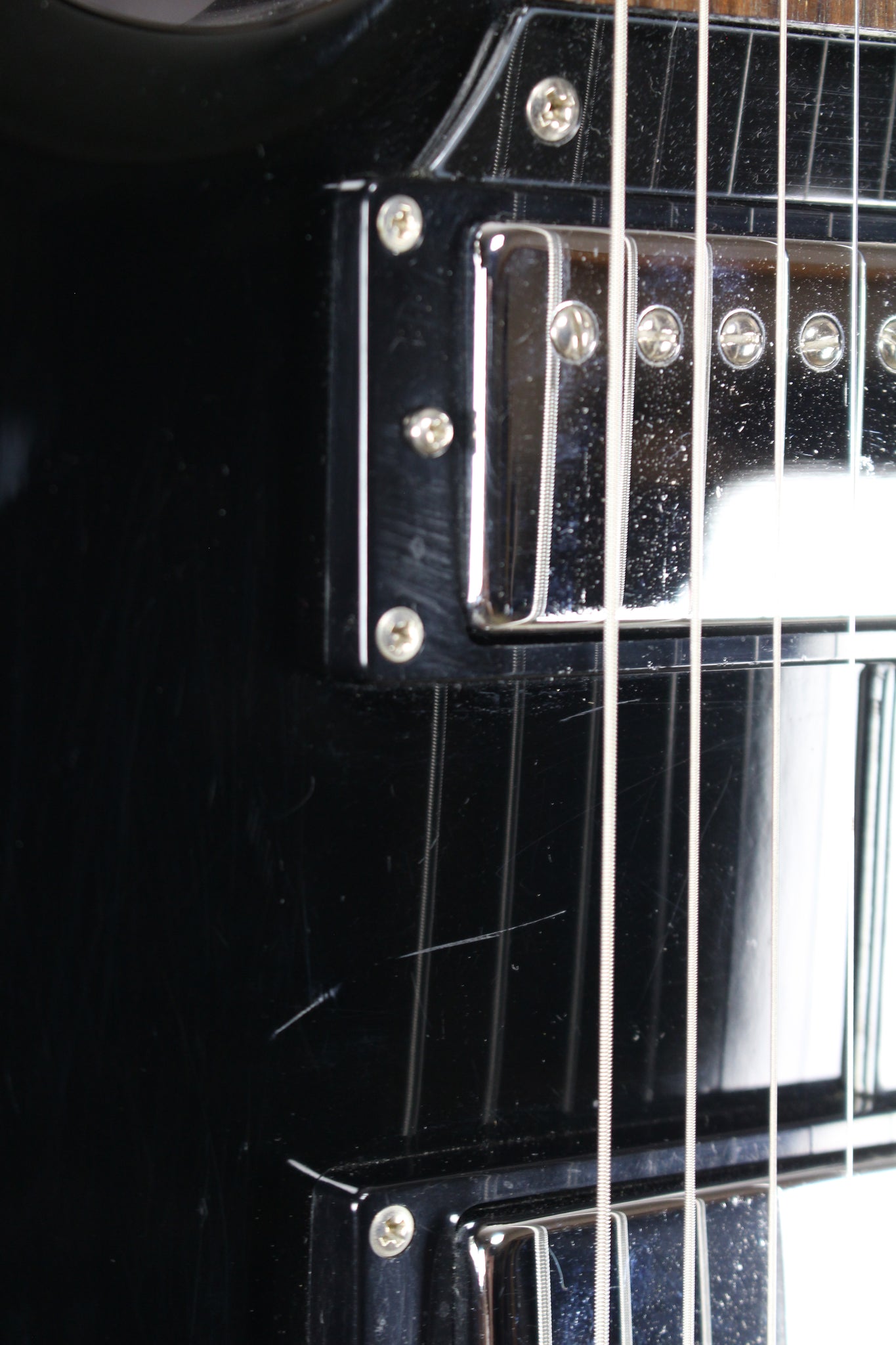 Summary: This 2002 Epiphone SG Standard inimitable tone begins with a solid mahogany body and mahogany neck that provide warmth and depth, then it adds an Indian laurel fretboard for clarity and punch. Twin humbucking pickups bring the thunder, and a top-shelf hardware package rounds out this sublimely slick and incontestably cool classic guitar.