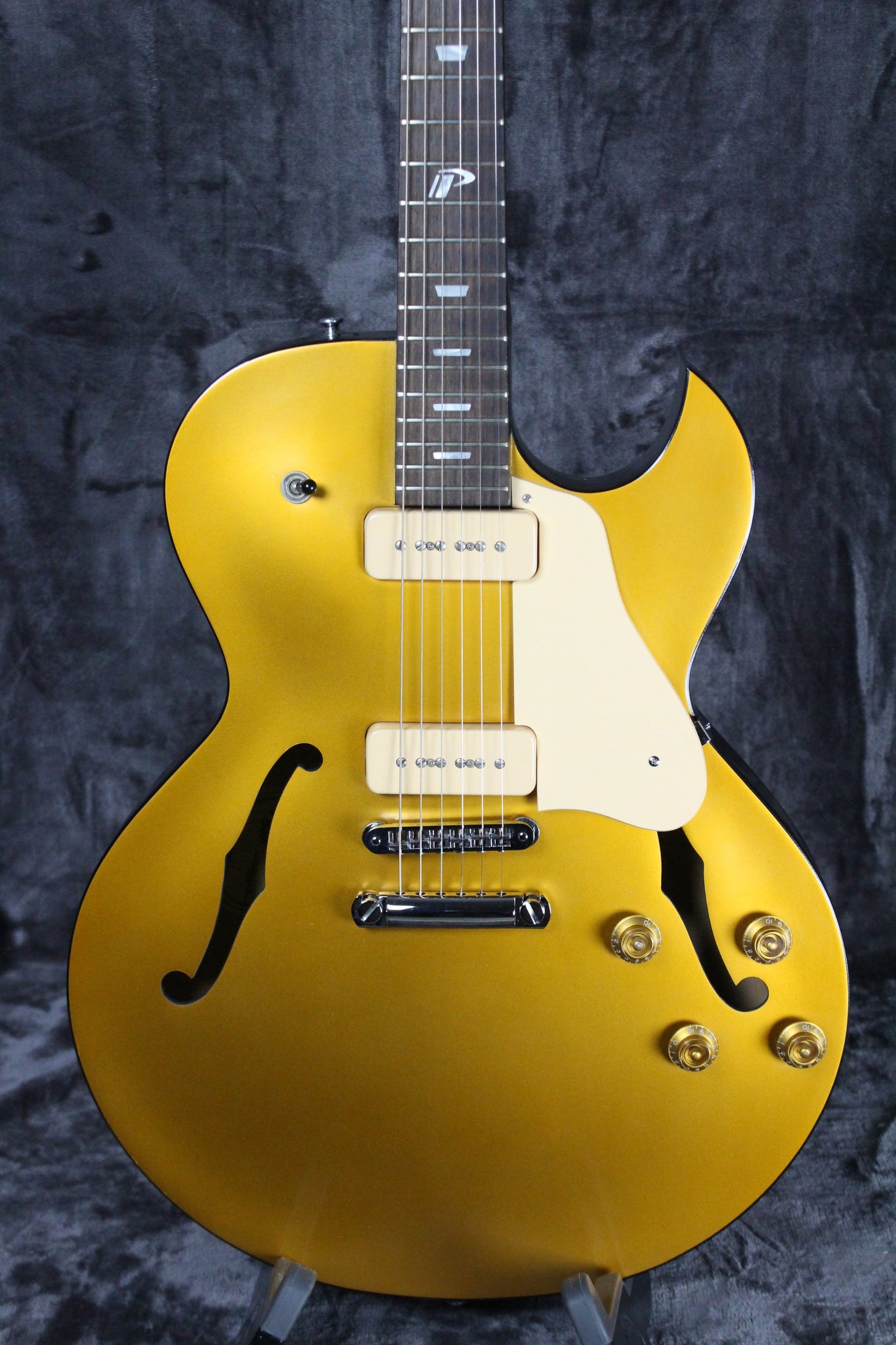 Summary: The ES-137 was produced by Gibson starting in the early 2000’s and it's based on the same design as the classic ES-135 with the addition of a mahogany center block to reduce feedback and enhance sustain. The arched top, arched back, & sides are laminated maple. This ES-137 Premier has small pearl block inlays, a “P” inlay on the 12th fret, two great sounding P90 pickups with cream covers.