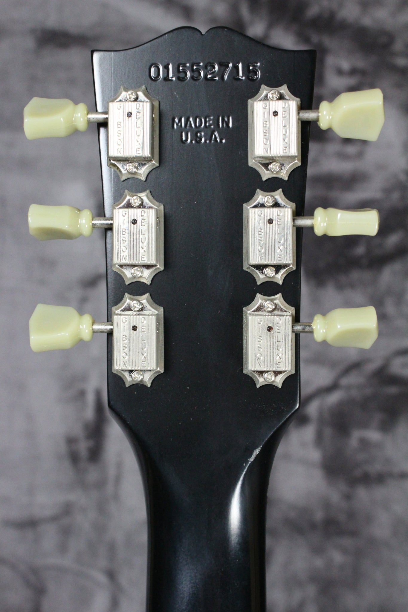 Pickups/Hardware: Two P90 pickups, Gibson Deluxe keystone tuning keys, cream plastics/black switch tip, 2x volume/2x tone controls/3-way pickup selector, tunomatic bridge/stop bar tailpiece.