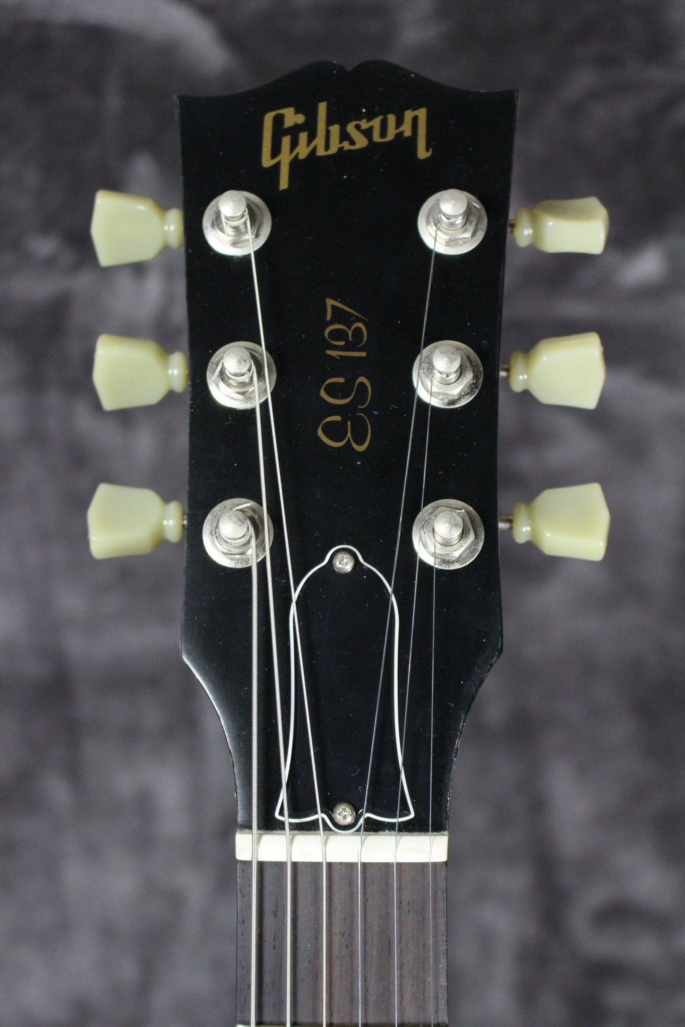 Summary: The ES-137 was produced by Gibson starting in the early 2000’s and it's based on the same design as the classic ES-135 with the addition of a mahogany center block to reduce feedback and enhance sustain. The arched top, arched back, & sides are laminated maple. This ES-137 Premier has small pearl block inlays, a “P” inlay on the 12th fret, two great sounding P90 pickups with cream covers.