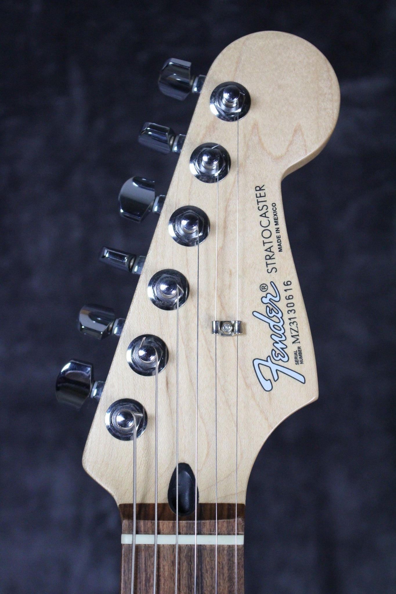Pickups/Hardware: Three single coil pickups, master volume/2x tone controls/5-way pickup selector, white pickguard, Fender closed gear tuning keys, individual saddles.