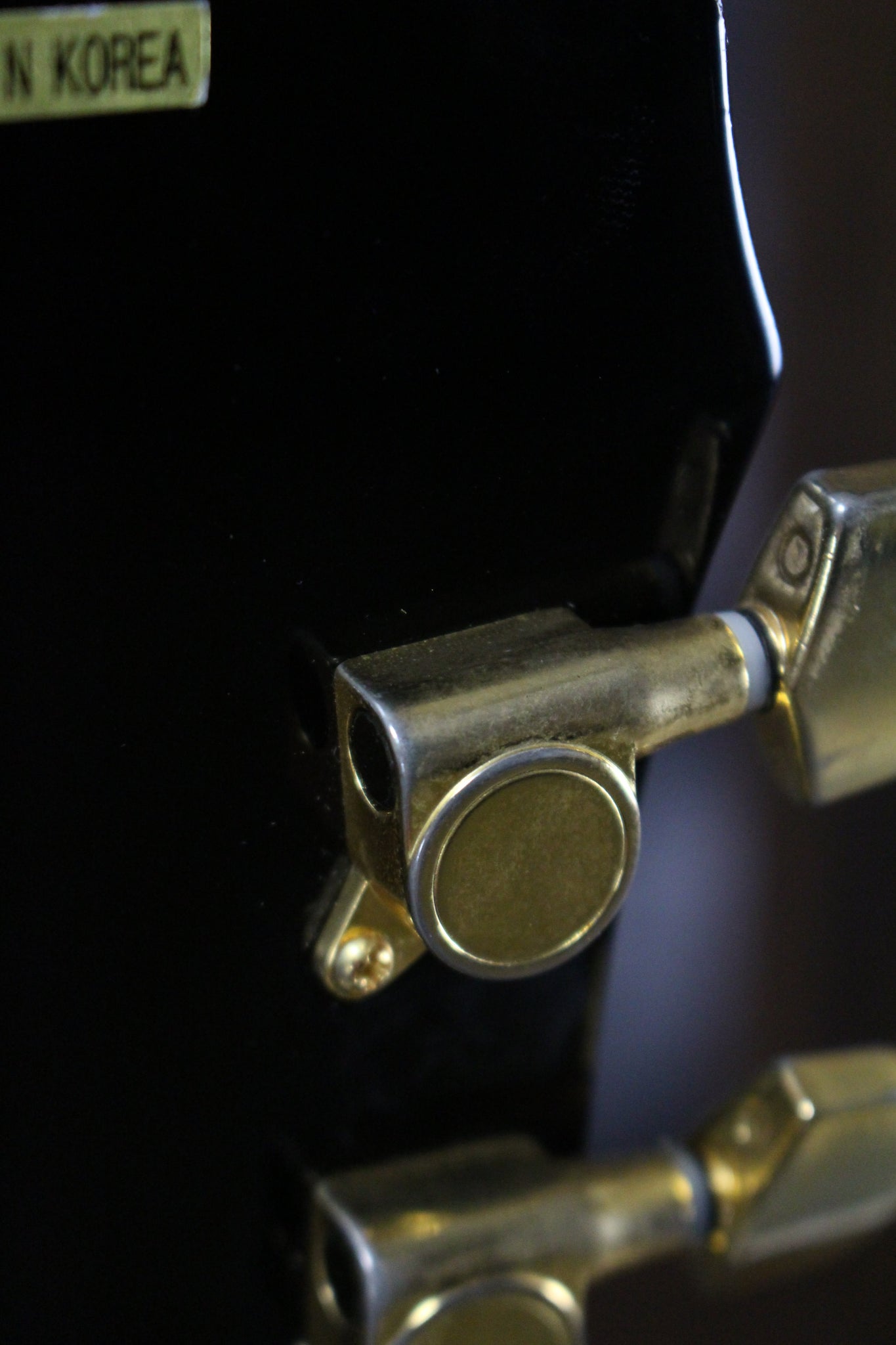 Pickups/Hardware: Epiphone floating mini-humbucking pickups, gold tuning keys, wooden bridge frequensator tailpiece, black knob, bone nut.