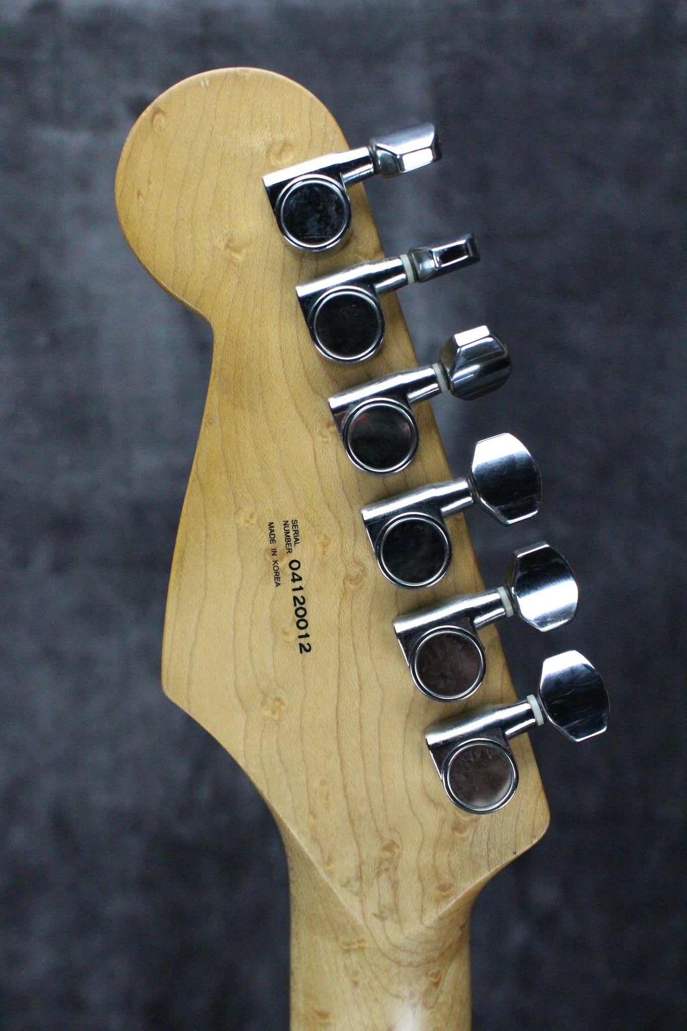 Pickups/Hardware: Three Seymour Duncan APS single coil pickups, master volume/master tone controls/5-way pickup selector, cast/sealed tuning keys, two-point synchronized tremolo system, chrome hardware.