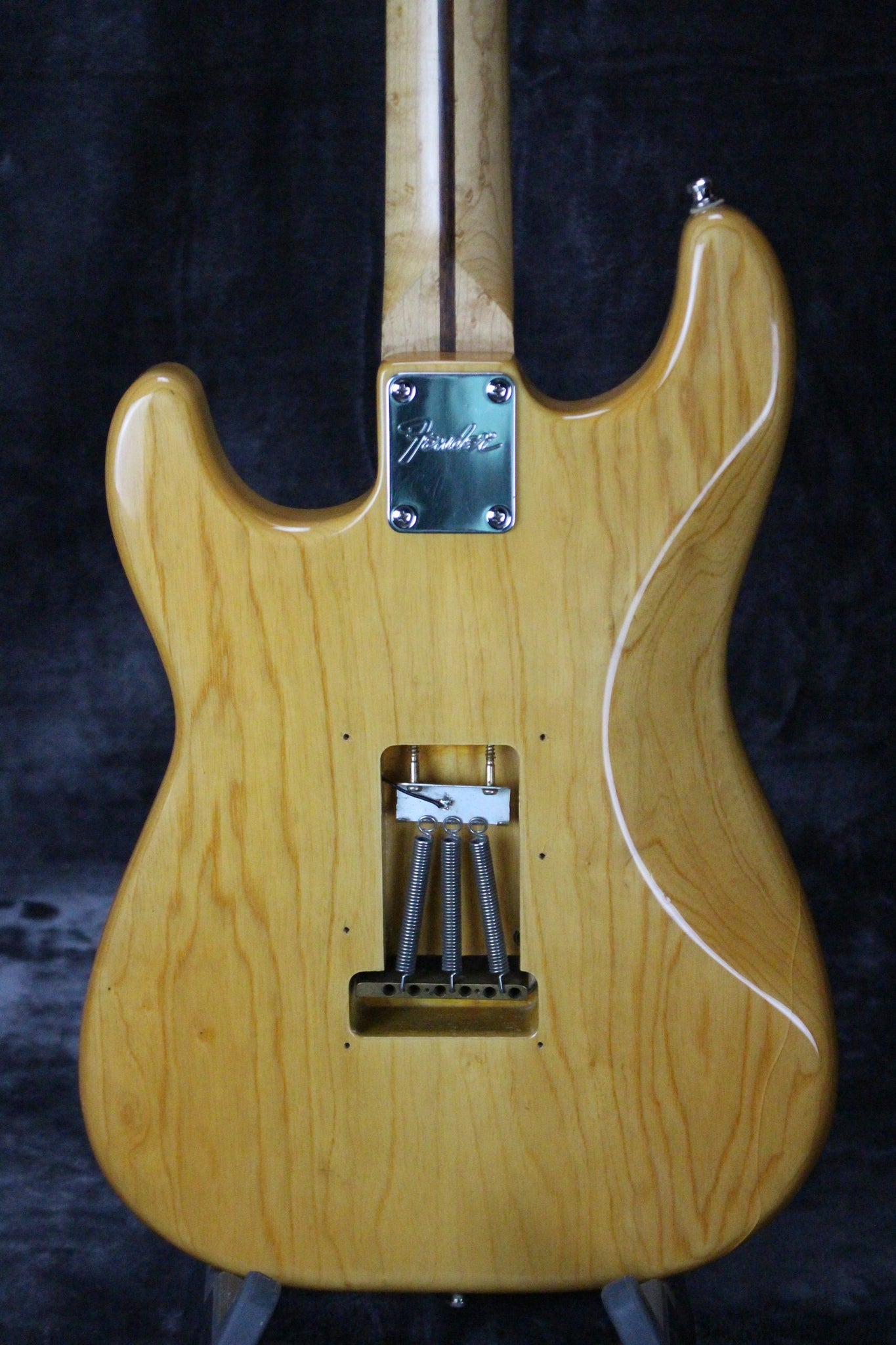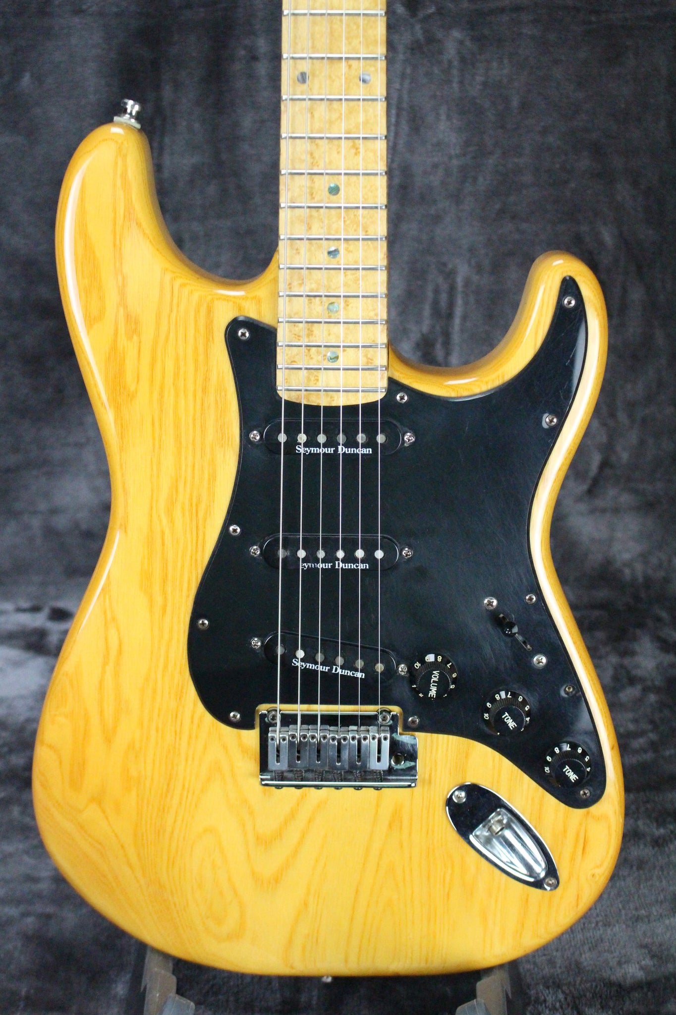 Summary: Many early Strats and Teles were built with ash bodies, and then given a translucent "blond" finish. Ash is a choice tone wood that often has a very pleasing figure (or grain pattern). This Strat starts with a "custom contoured" lightweight ash body and is finished in a natural polyurethane that shows off the wood beautifully. Unlike most production model Strats, this one comes with a single-ply black pickguard that is a nice contrast to the ash body. Mounted on the pickguard are three specially designed Seymour Duncan pickups with staggered Alnico pole pieces: APS-1N (neck), APS-1RWRP (middle), APS-1B (bridge). The pickups have black covers, and the tone and volume controls are also matching black. A two-point synchronized tremolo lets you bend notes or entire chords up or down with remarkable tuning stability. This Strat also comes with a birdseye maple neck with abalone position markers.