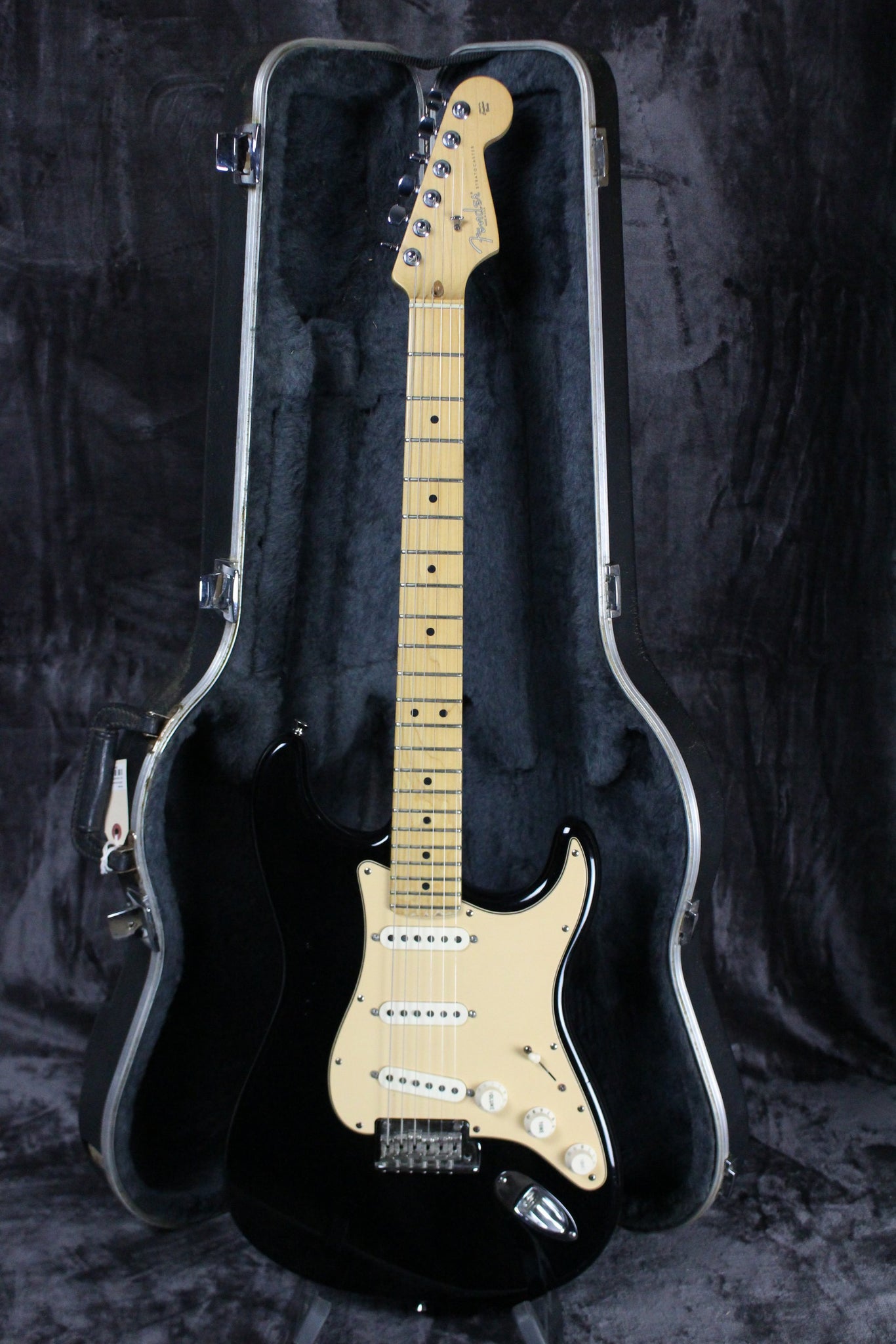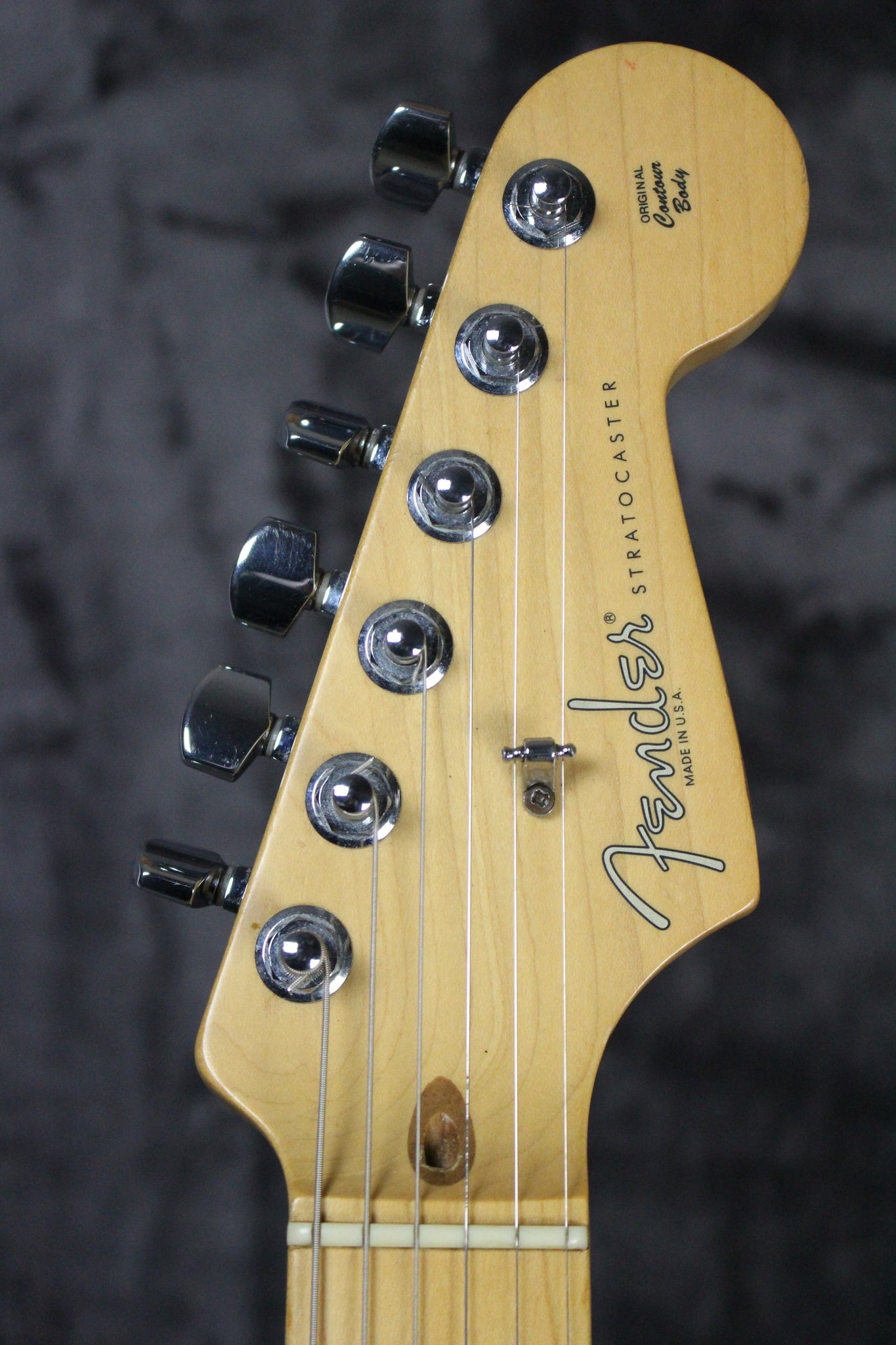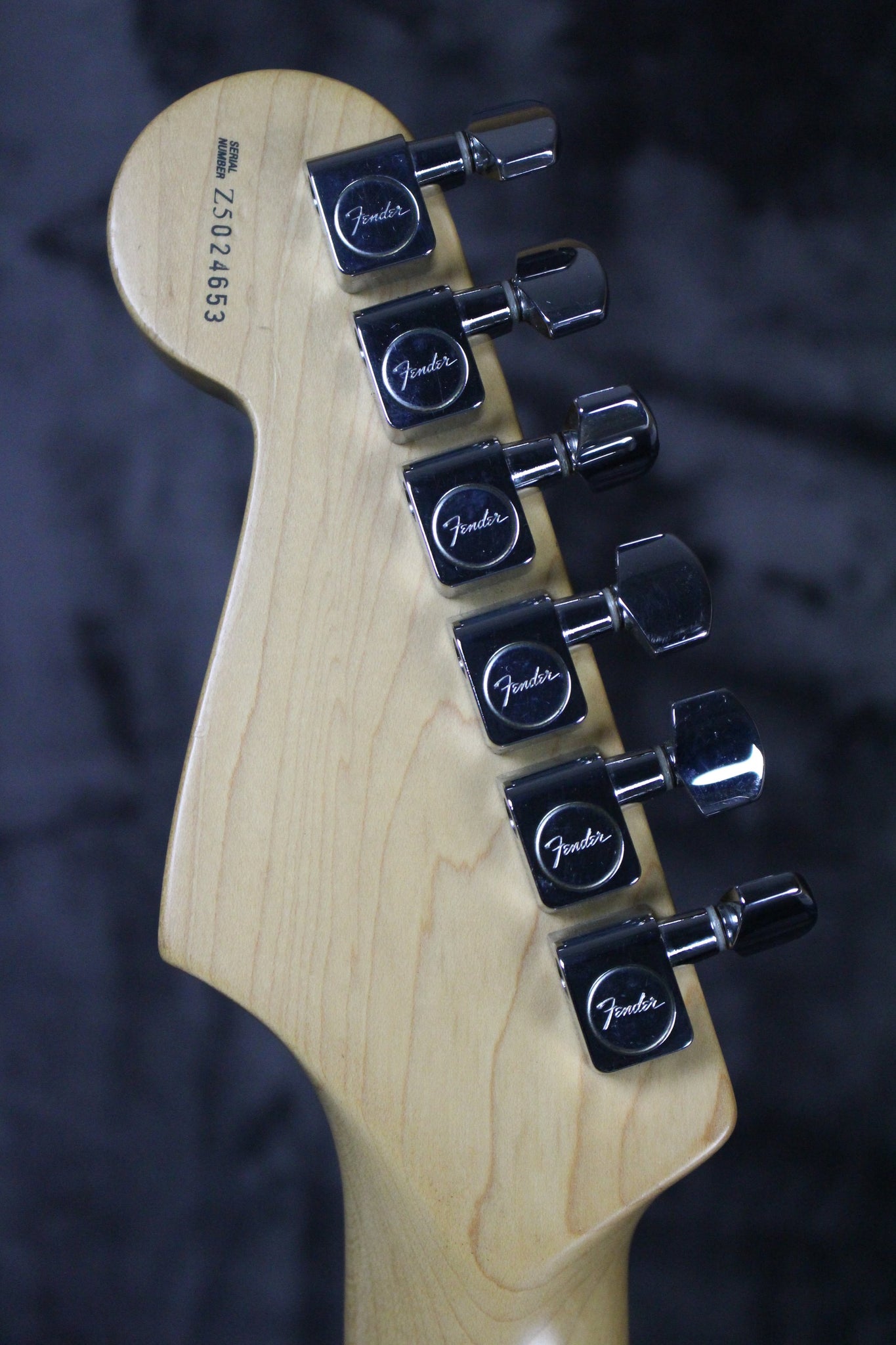 Summary: Produced from 2000-2008 as part of the American Series, the American Stratocaster was the flagship U.S. made guitar. Features include a modern "C" shaped neck with 22 medium jumbo frets, Fender-branded Schaller tuning machines with staggered post heights for better string tension, a 2-point synchronized tremolo with individual saddles, and three American Series single-coil pickups. On this Stratocaster, the saddles have been replaced with Callaham saddles and a some of the pickup screws have been changed.