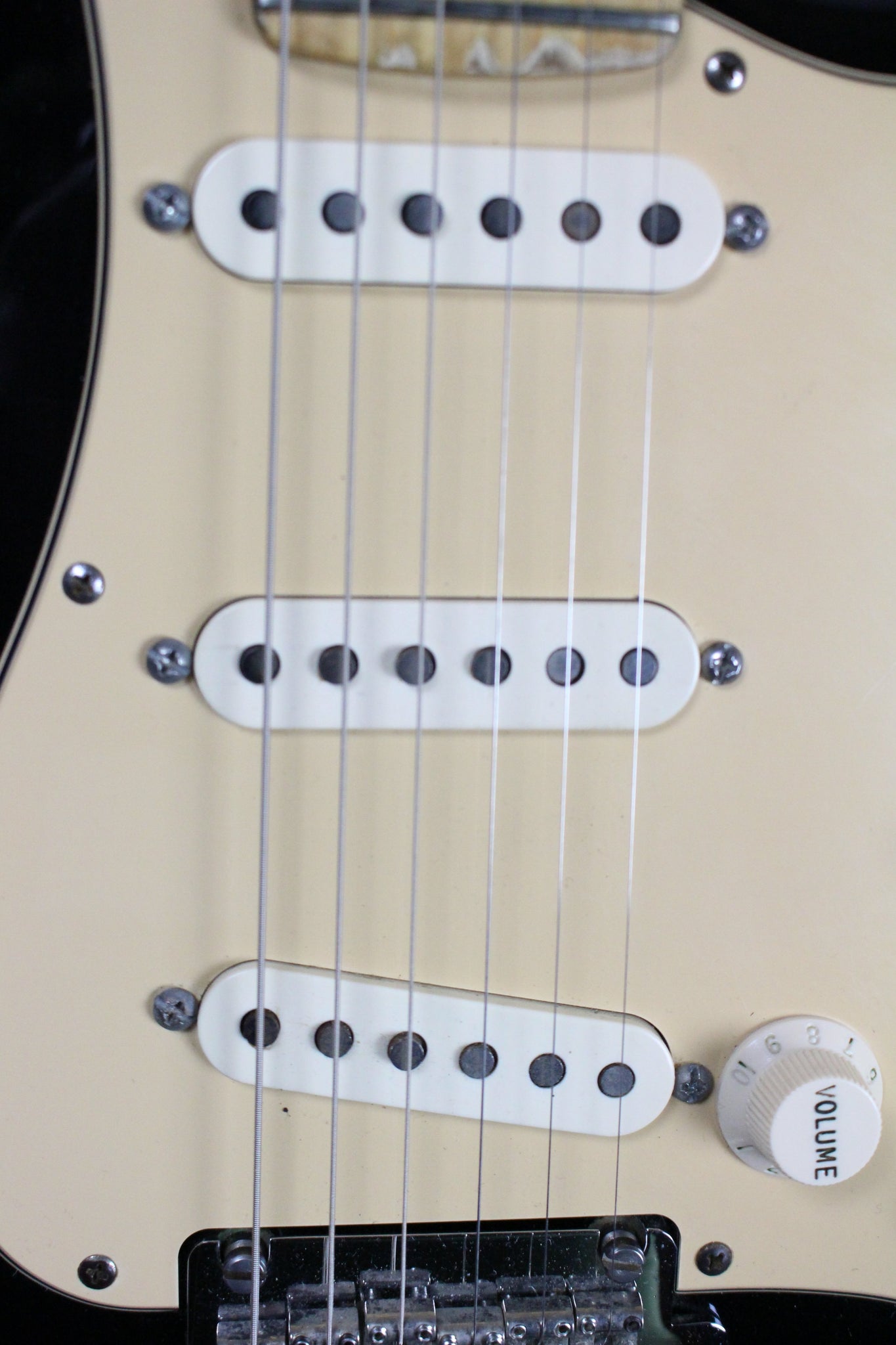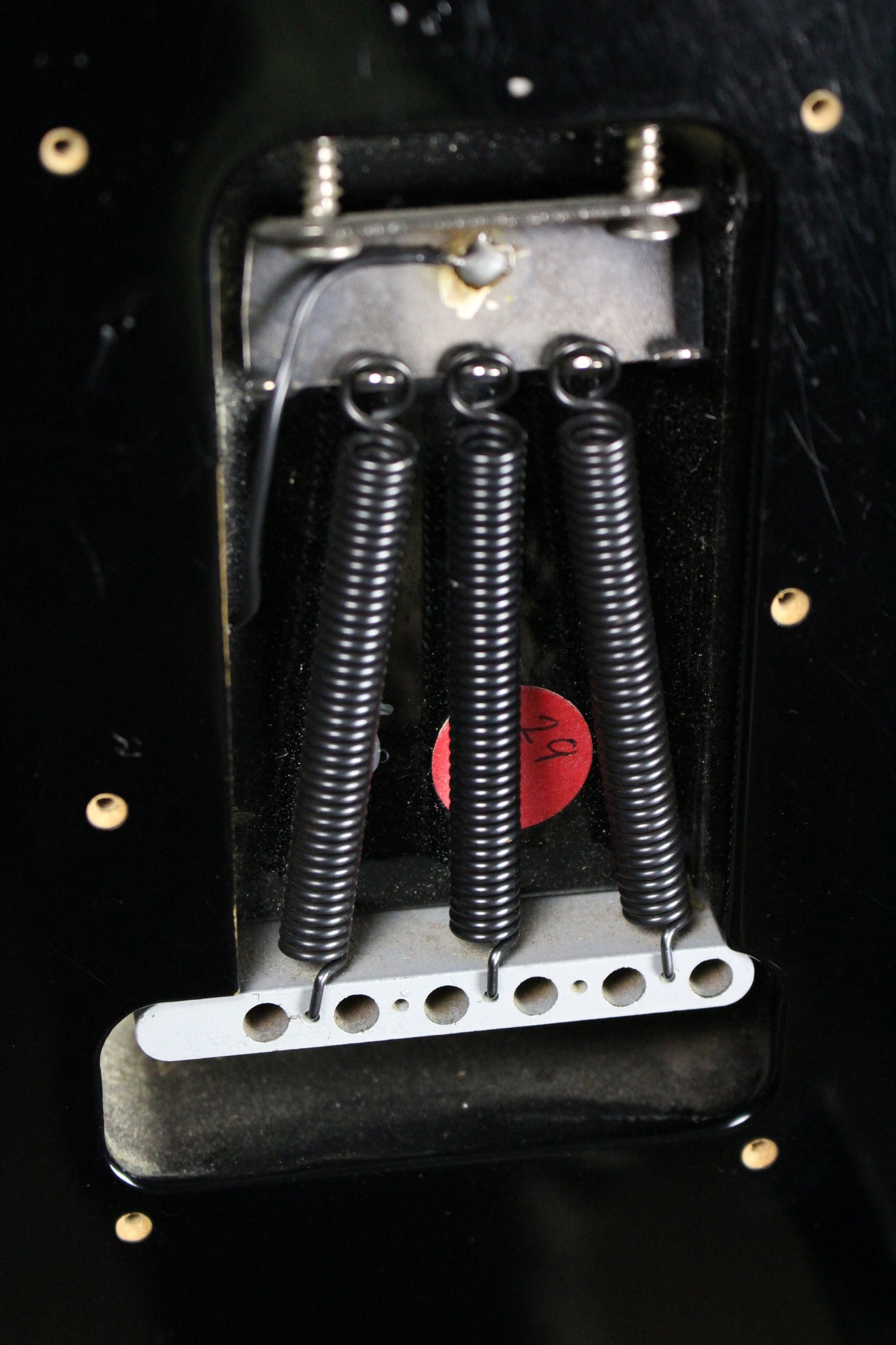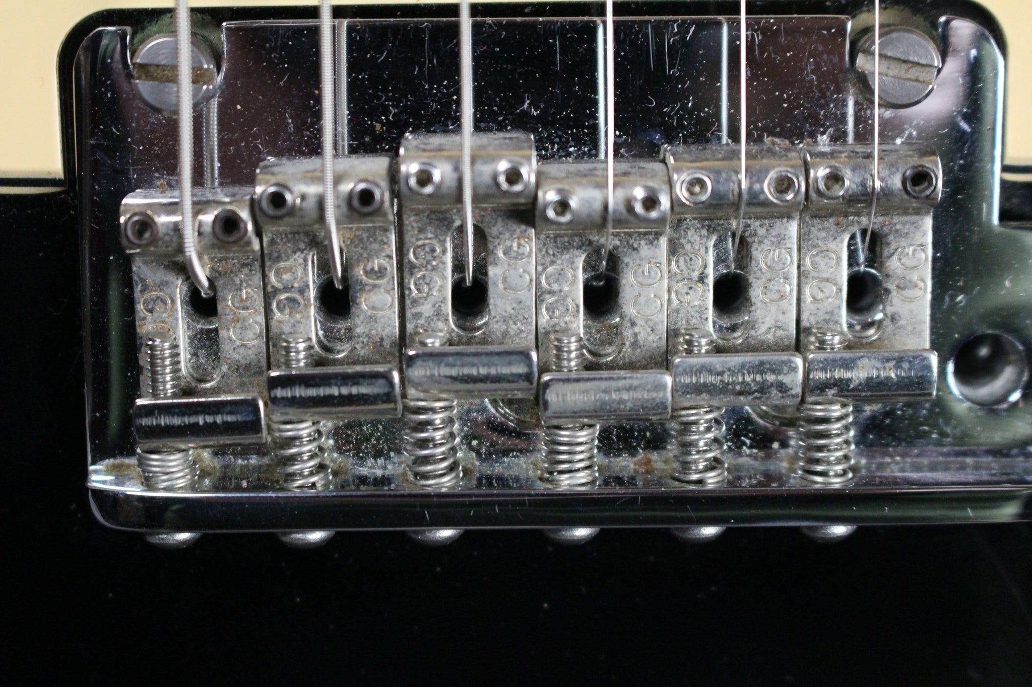 Summary: Produced from 2000-2008 as part of the American Series, the American Stratocaster was the flagship U.S. made guitar. Features include a modern "C" shaped neck with 22 medium jumbo frets, Fender-branded Schaller tuning machines with staggered post heights for better string tension, a 2-point synchronized tremolo with individual saddles, and three American Series single-coil pickups. On this Stratocaster, the saddles have been replaced with Callaham saddles and a some of the pickup screws have been changed.
