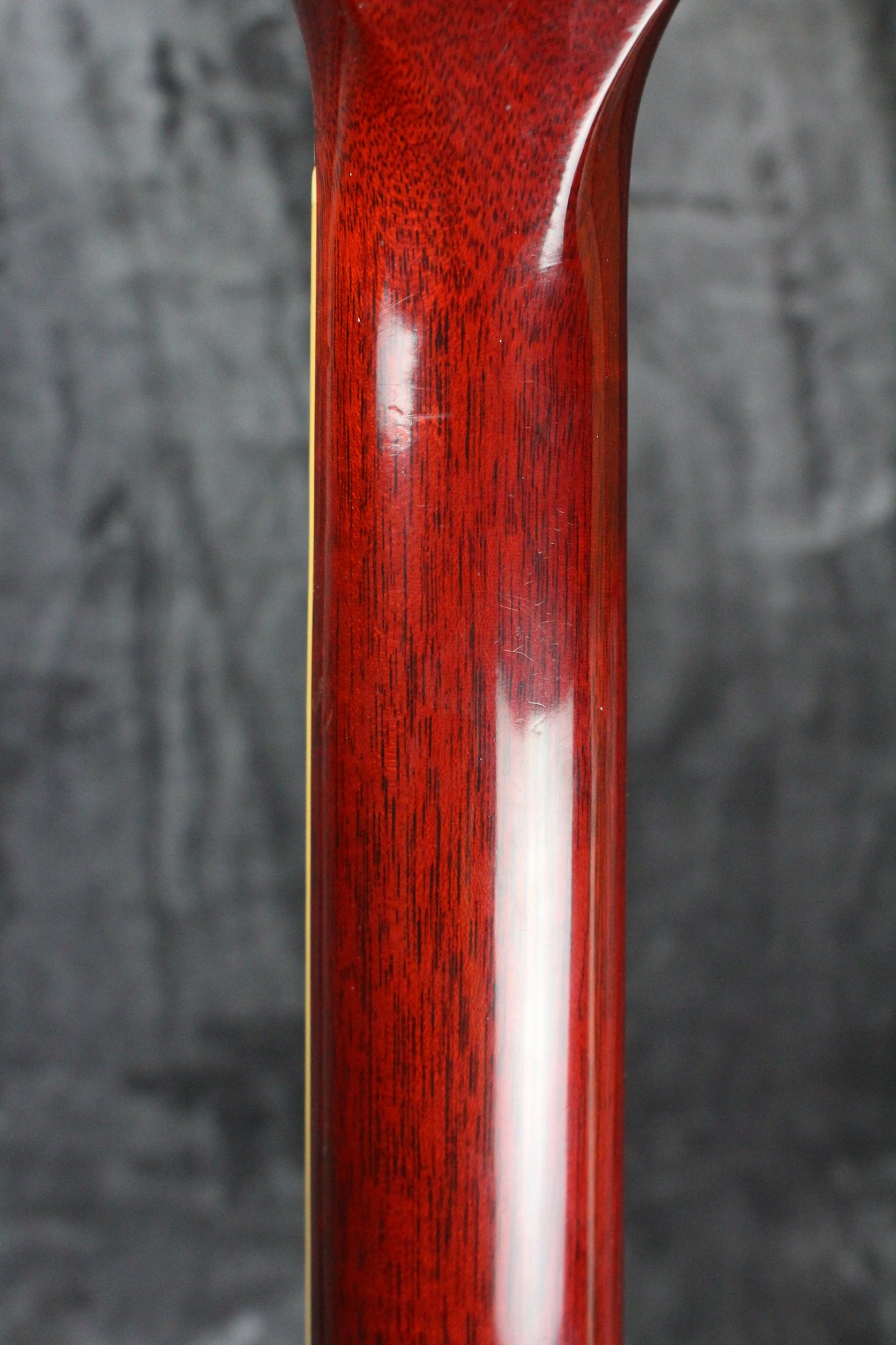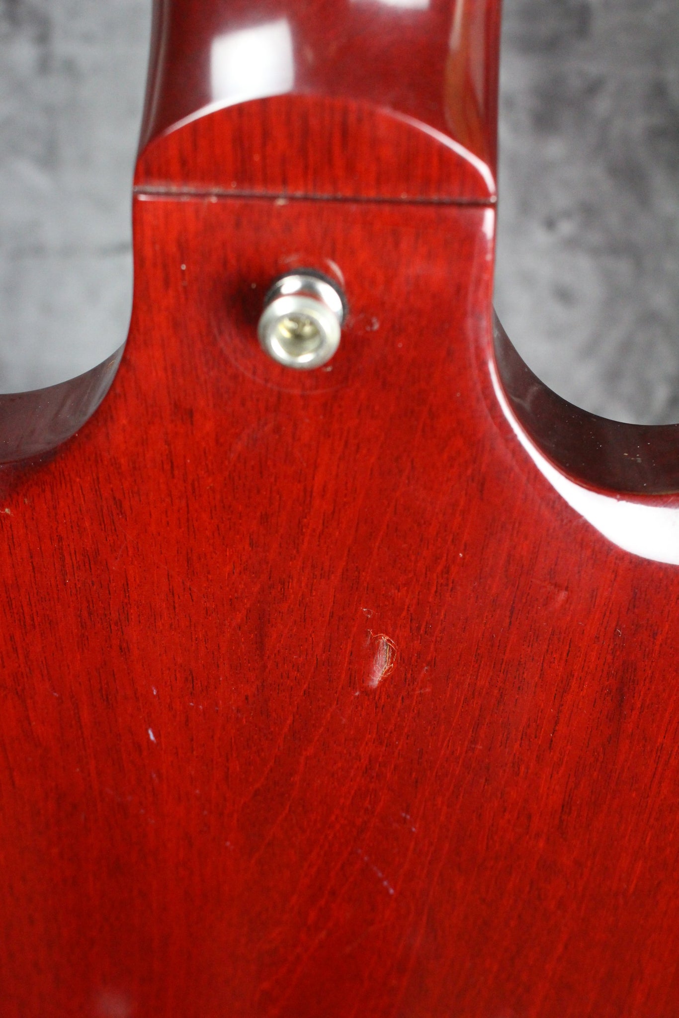 Body: Double cutaway, solid mahogany with a cherry nitrocellulose gloss finish.