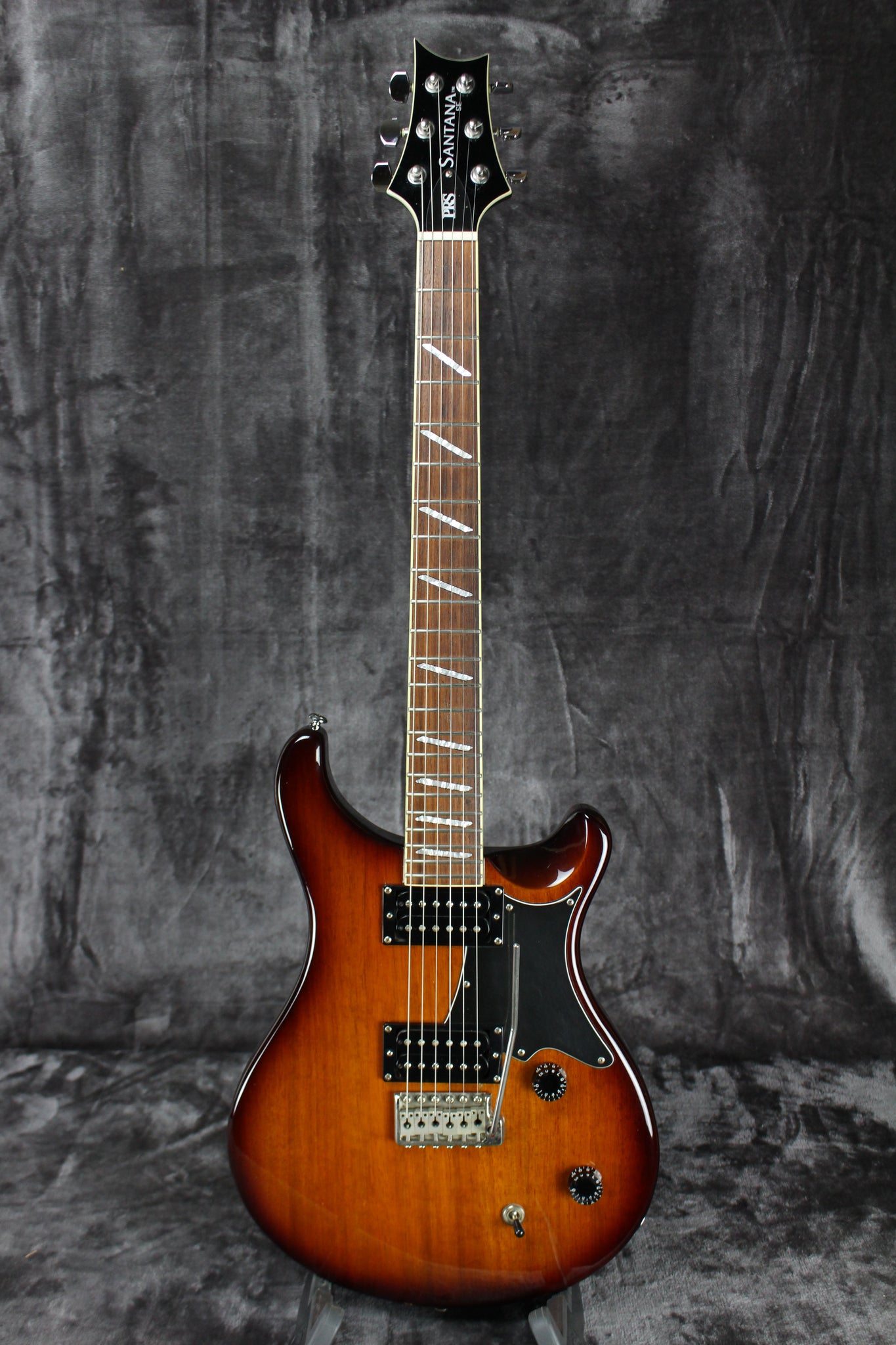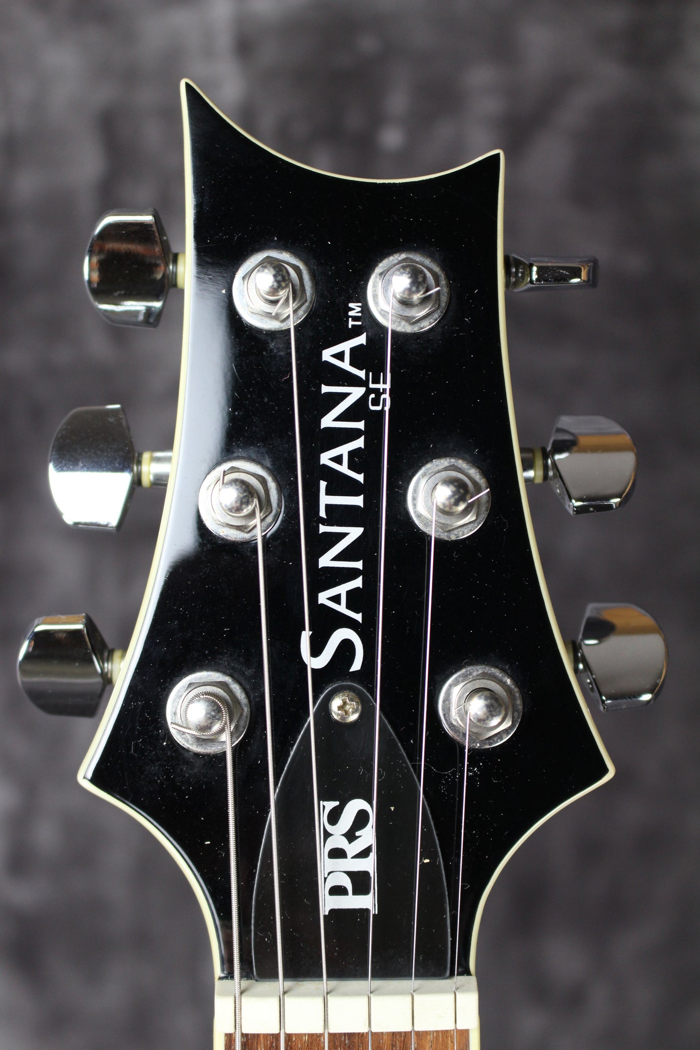 Summary: This 2005 PRS Santana SE is a mid-priced version of the popular Santana guitars. PRS open-coil humbuckers crank out sweet, solid tone at any volume. The set mahogany neck plays fast and smooth and enhances sustain. Scooped upper bout and contoured back make for comfortable playing and easy reaches. Rosewood fretboard, PRS-designed tuners, hardtail bridge, and Santana SE logo on headstock.