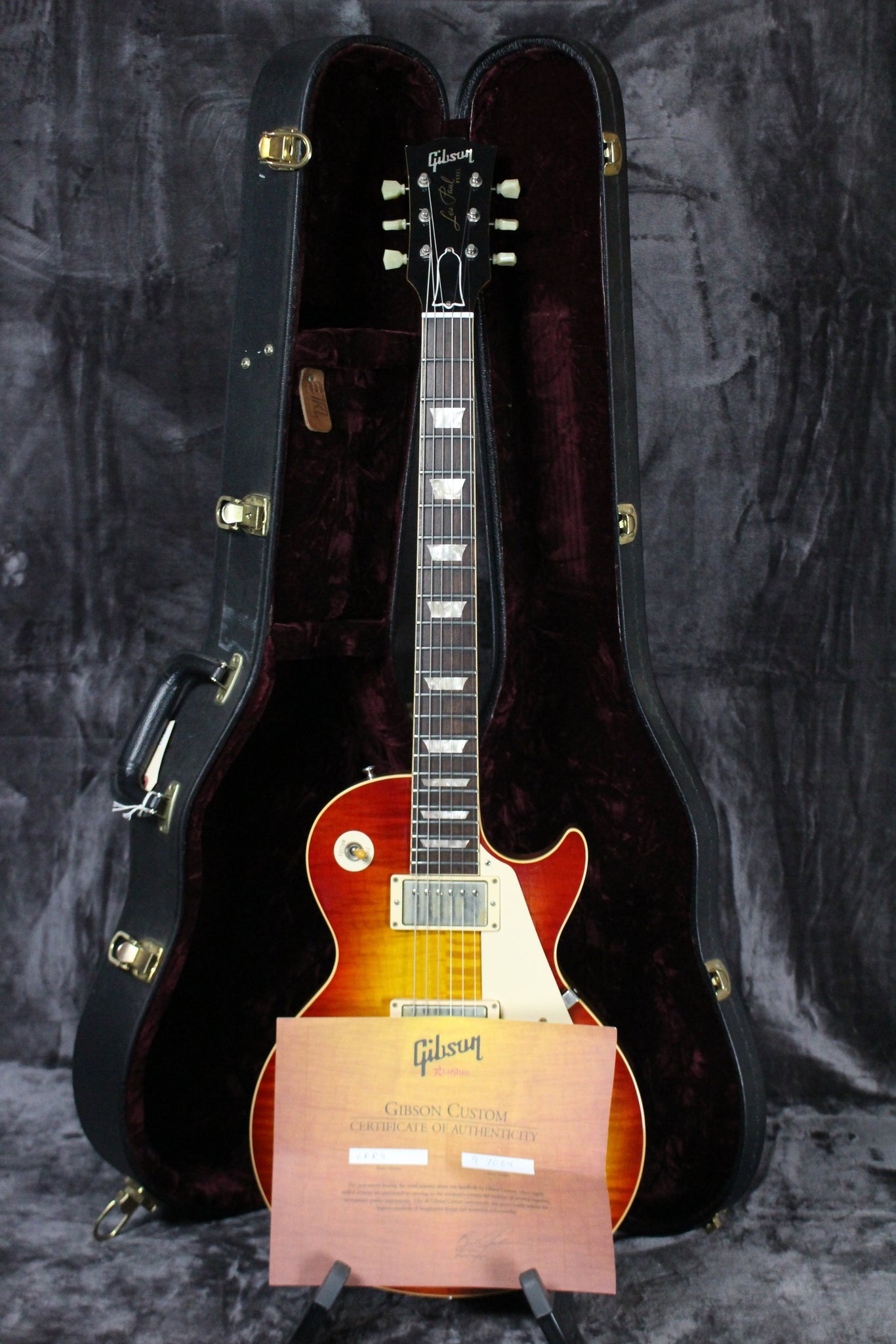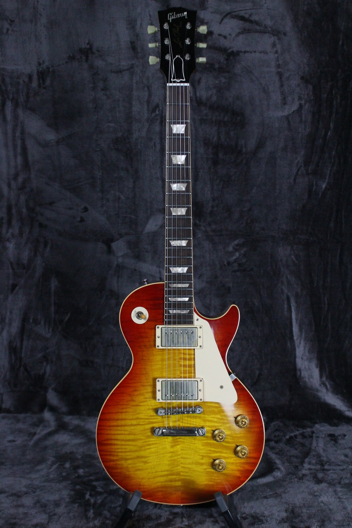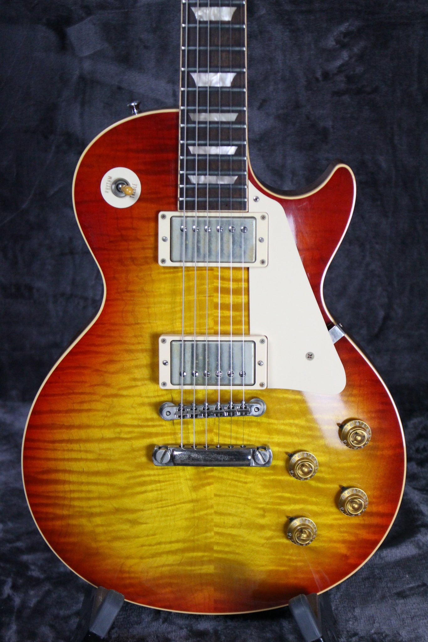 Summary: The 1959 Les Paul is known in musician circles as the Holy Grail of Guitars. This Gibson Custom Shop 1959 Les Paul Standard Reissue is built from select tonewoods, including a solid mahogany body, a figured maple top, and Indian rosewood fingerboard. Get authentic PAF tones, courtesy of BurstBucker pickups and a handwired harness with paper-in-oil capacitors. This true-to-life re-creation also boasts hide-glue construction, a long neck tenon, and vintage-style Gibson Deluxe tuners. A gorgeous thin VOS nitrocellulose lacquer finish completes this 1959 Les Paul Standard Reissue.