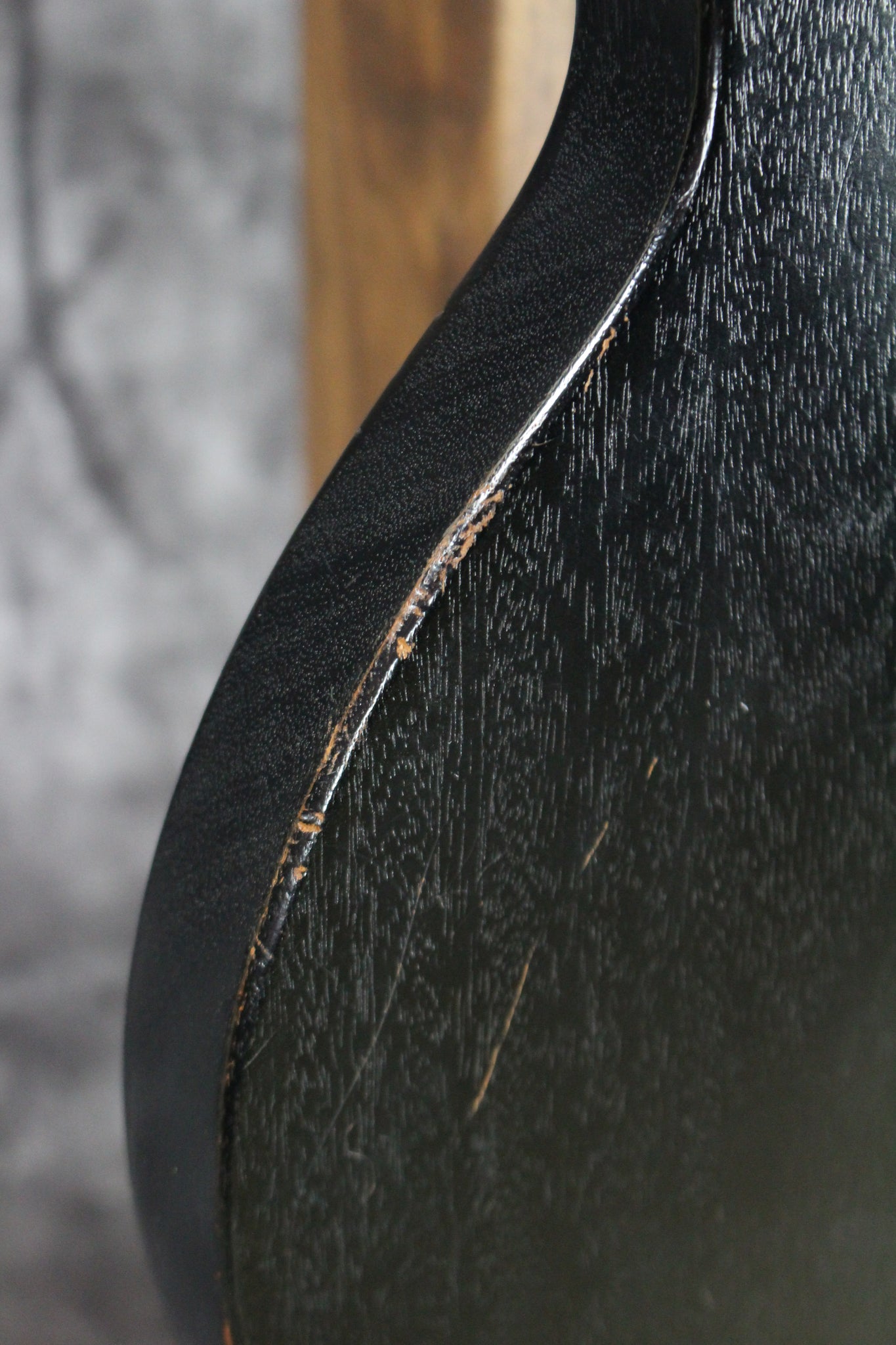 Cosmetics: This guitar is in good shape. It has light surface scratches on the body, with some scrapes, and nicks. The back of the neck is clean, and the frets show minimal wear. The back has light buckle rash. Overall, this guitar plays very well and sounds fantastic.