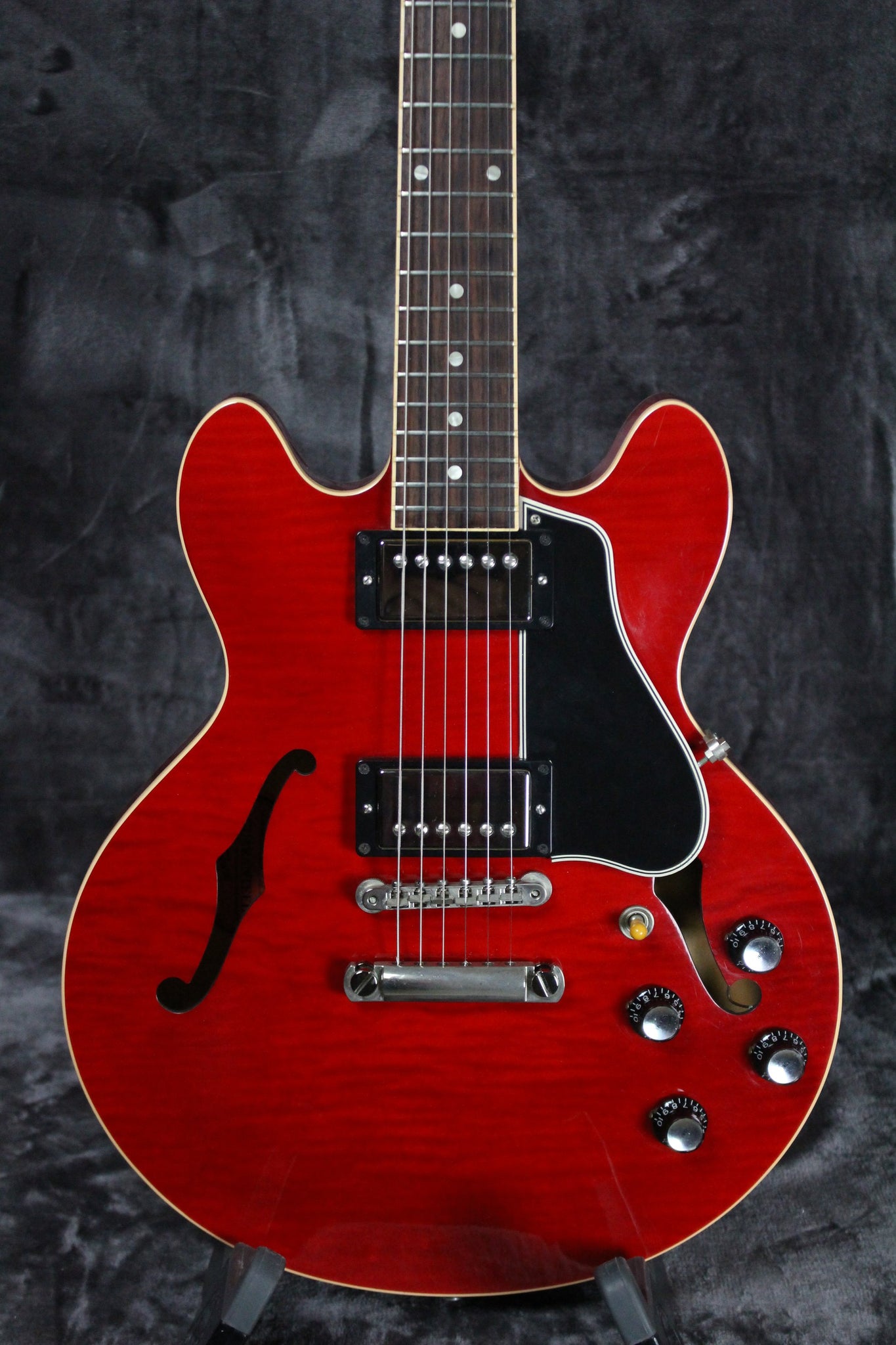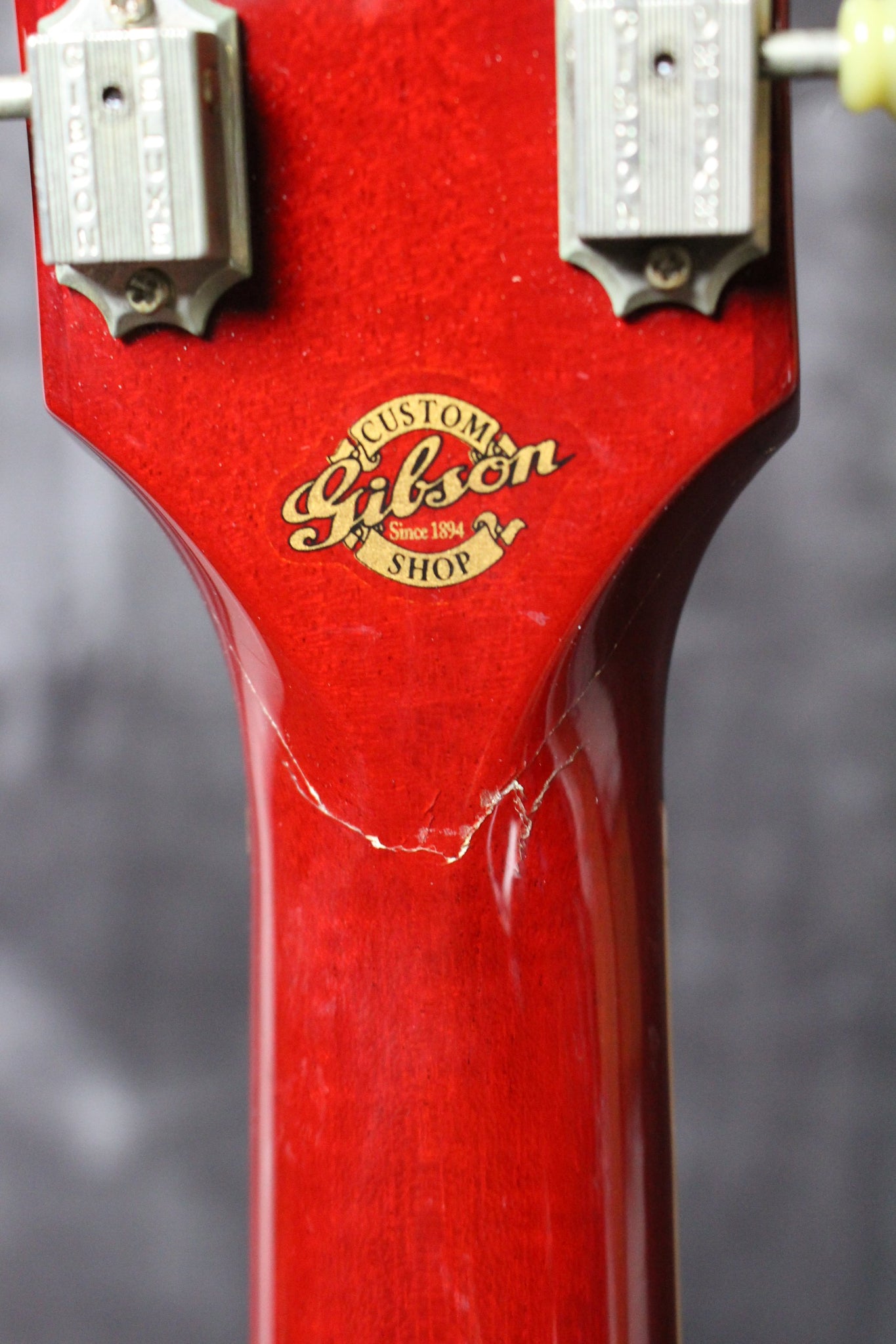 Summary: The Gibson ES-339 is a modern classic designed for those seeking the tone and look of an ES-335, but desire a slightly smaller, lighter instrument. It has a pearloid dot inlay rosewood fingerboard on a hand-rolled Rounded "C" mahogany neck. The 57 / 57 Classic + humbuckers paired with Gibson’s hand-wired tone circuit showcases the versatile Gibson ES tone. Tuning stability and precise intonation are provided by the Grover Rotomatic tuners with Kidney buttons paired with a light-weight aluminum ABR-1 bridge and stop bar tailpiece. The neck on this guitar had a break and has been repaired.