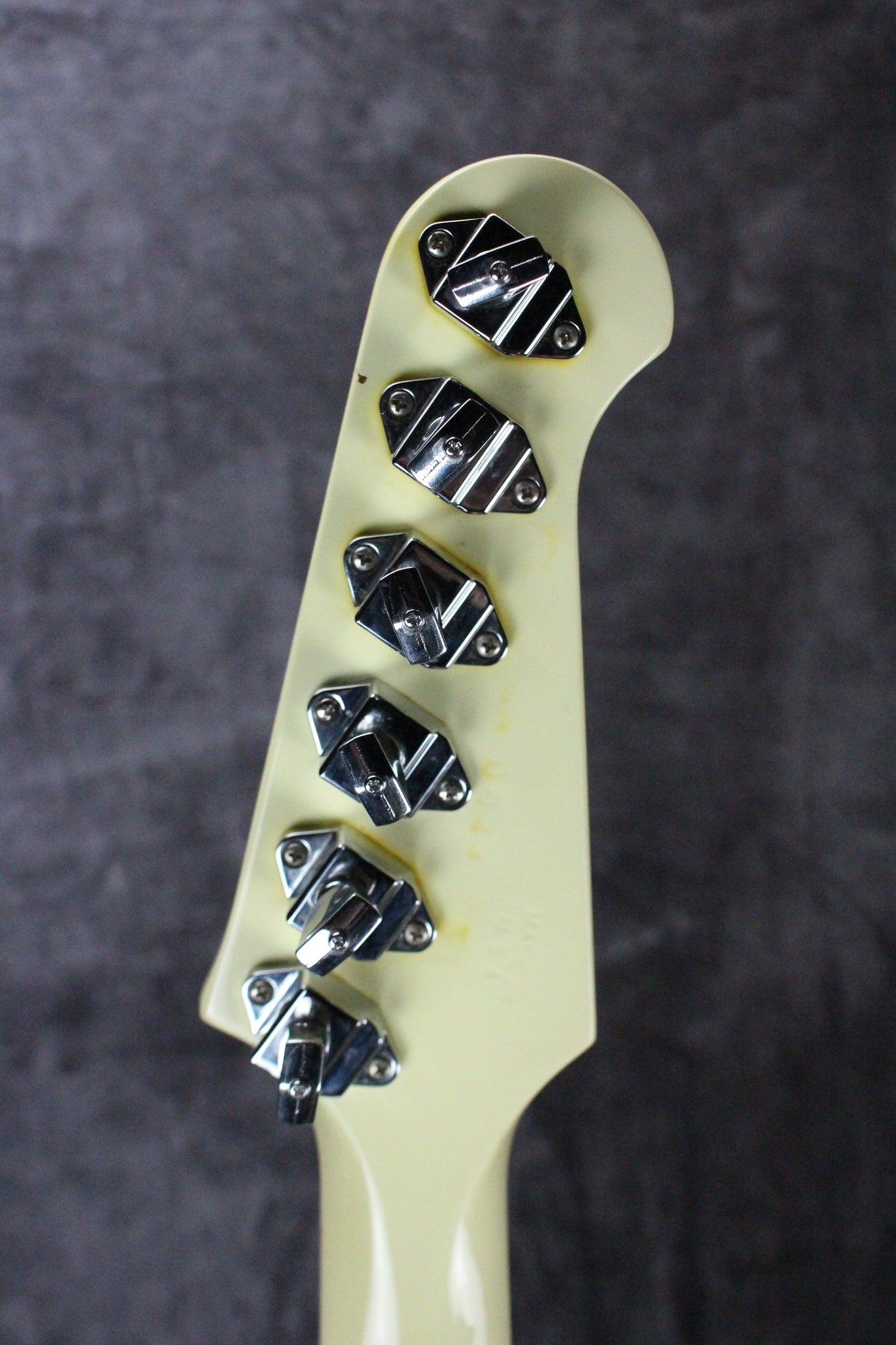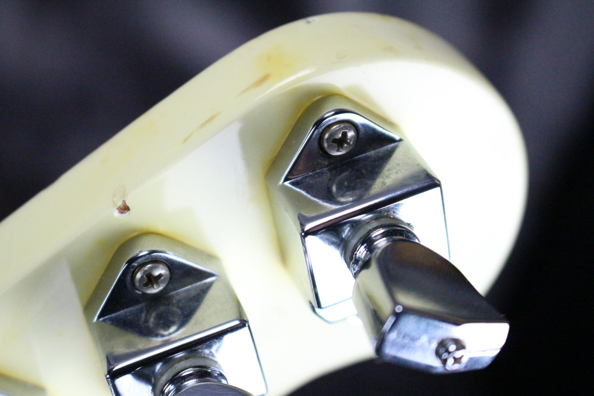 Cosmetics: This guitars finished has aged beautifully. It is hard to see in the photos, but it is almost a light cream now. There are a few dings on the body (See Photos Please). The tuning keys have a little rust coloration around them. The back of the neck has few small dings here and there. The frets are still in great shape.