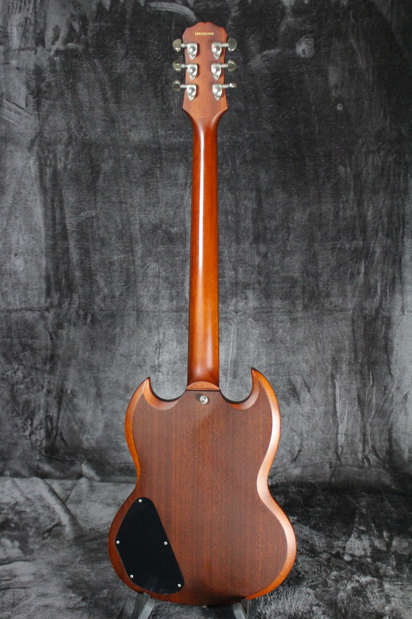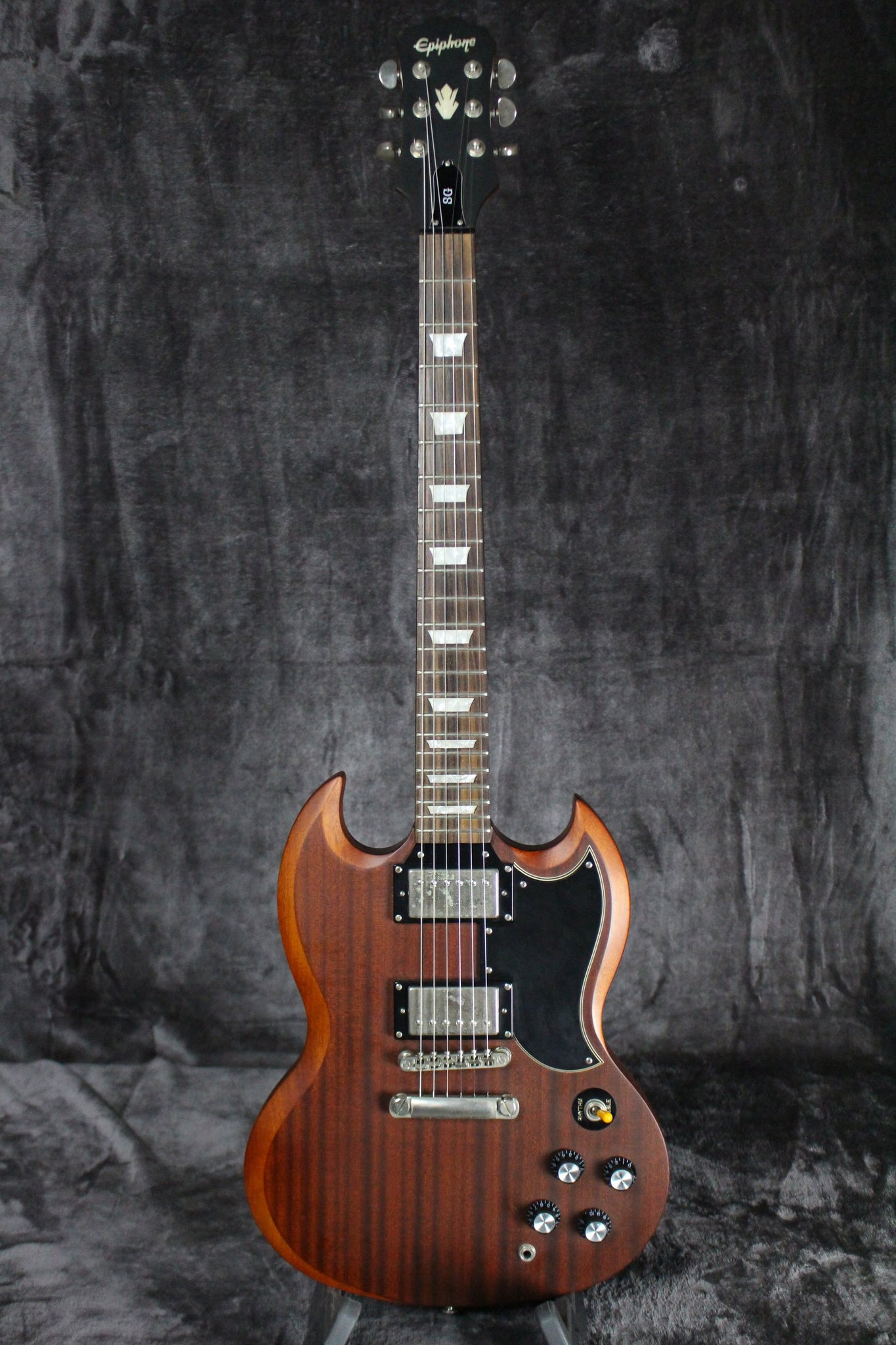 Summary: This Epiphone G-400 has a SlimTaper Mahogany neck with a Rosewood fingerboard. It comes equipped with two Epiphone Alnico Classic humbuckers and Grover tuning keys. Intonation is adjustable with a tunomatic bridge and stop bar tailpiece. This G-400 is in great shape, plays very well, and sounds fantastic.