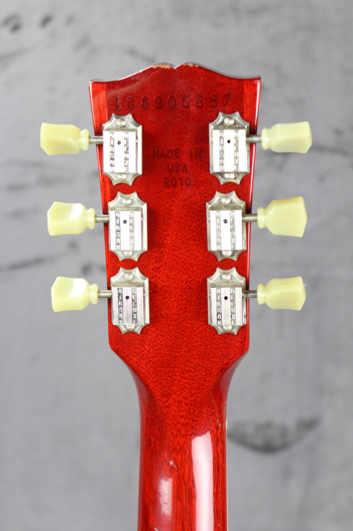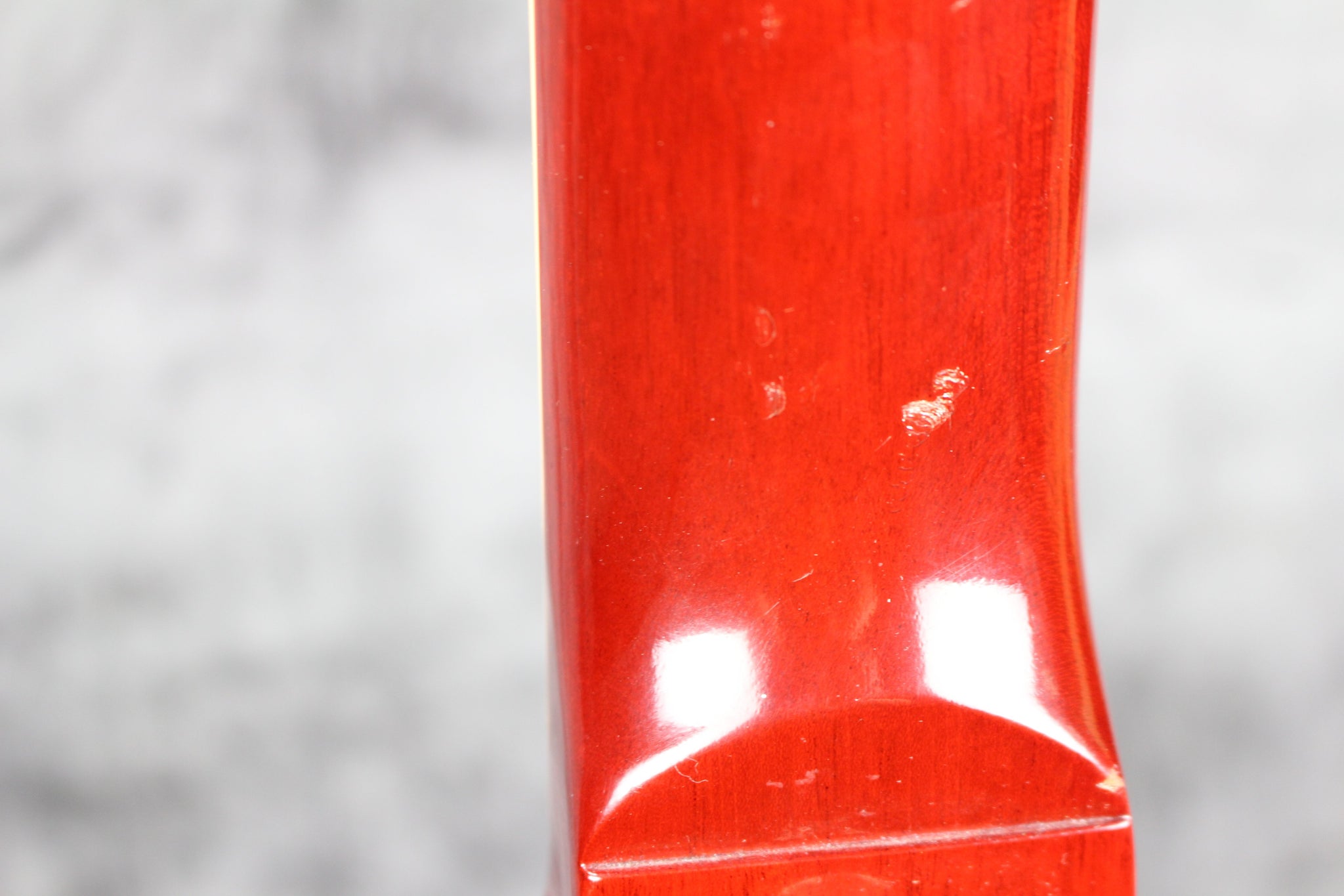 Body: Double cutaway, solid mahogany with a cherry nitrocellulose gloss finish.