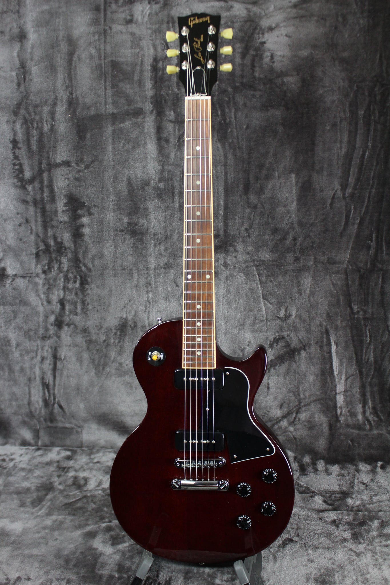Pickups/Hardware: Gibson P-90 single coils pickups, Kluson Deluxe tuning keys, tune-o-matic bridge, stop bar tailpiece, black speed knobs, bone nut.