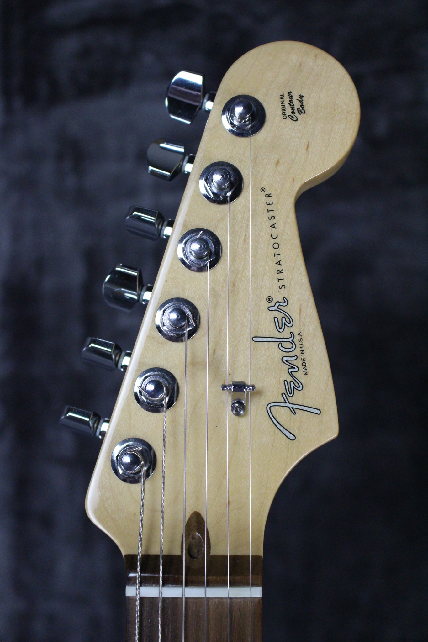 Summary: This 2012 Fender American Standard Stratocaster has upgraded with aged plastic parts and full-sounding Fender Custom Shop Fat '50s pickups, compared to vintage models. This iteration of the time-honored classicStratocaster is the very essence of Strat tone and remains a beauty to see, hear and feel.