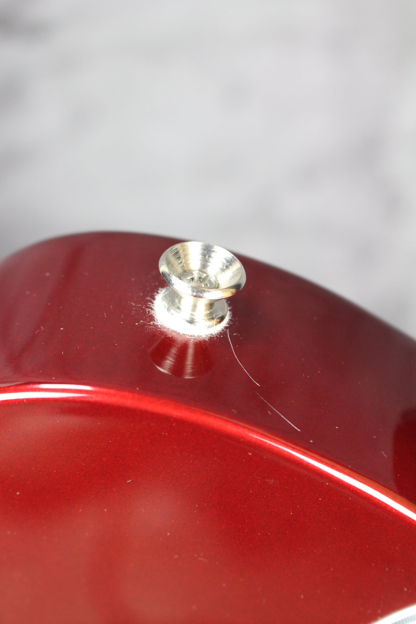 Body: Alder, gloss urethane finish, single cutaway, Candy Apple Red finish.