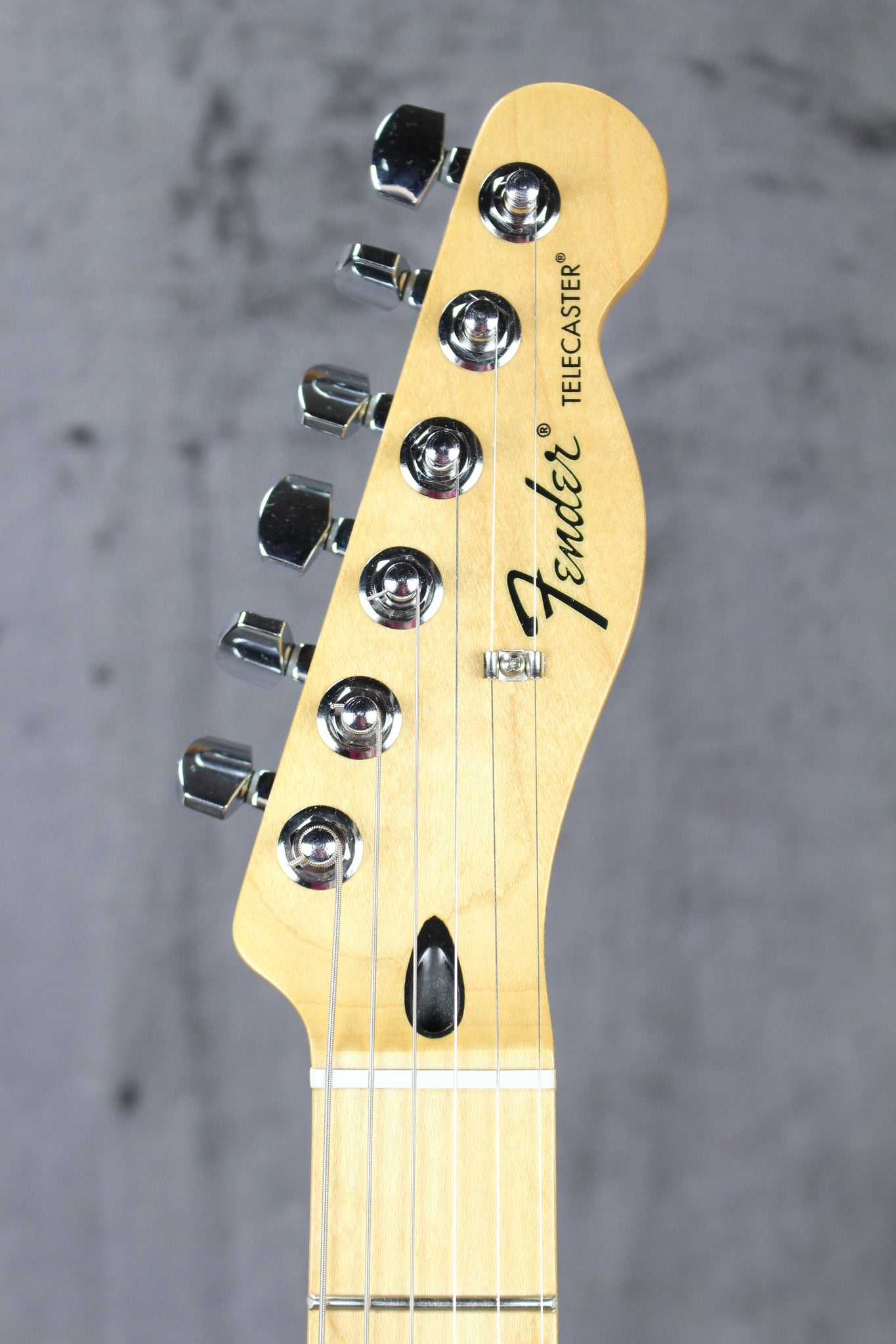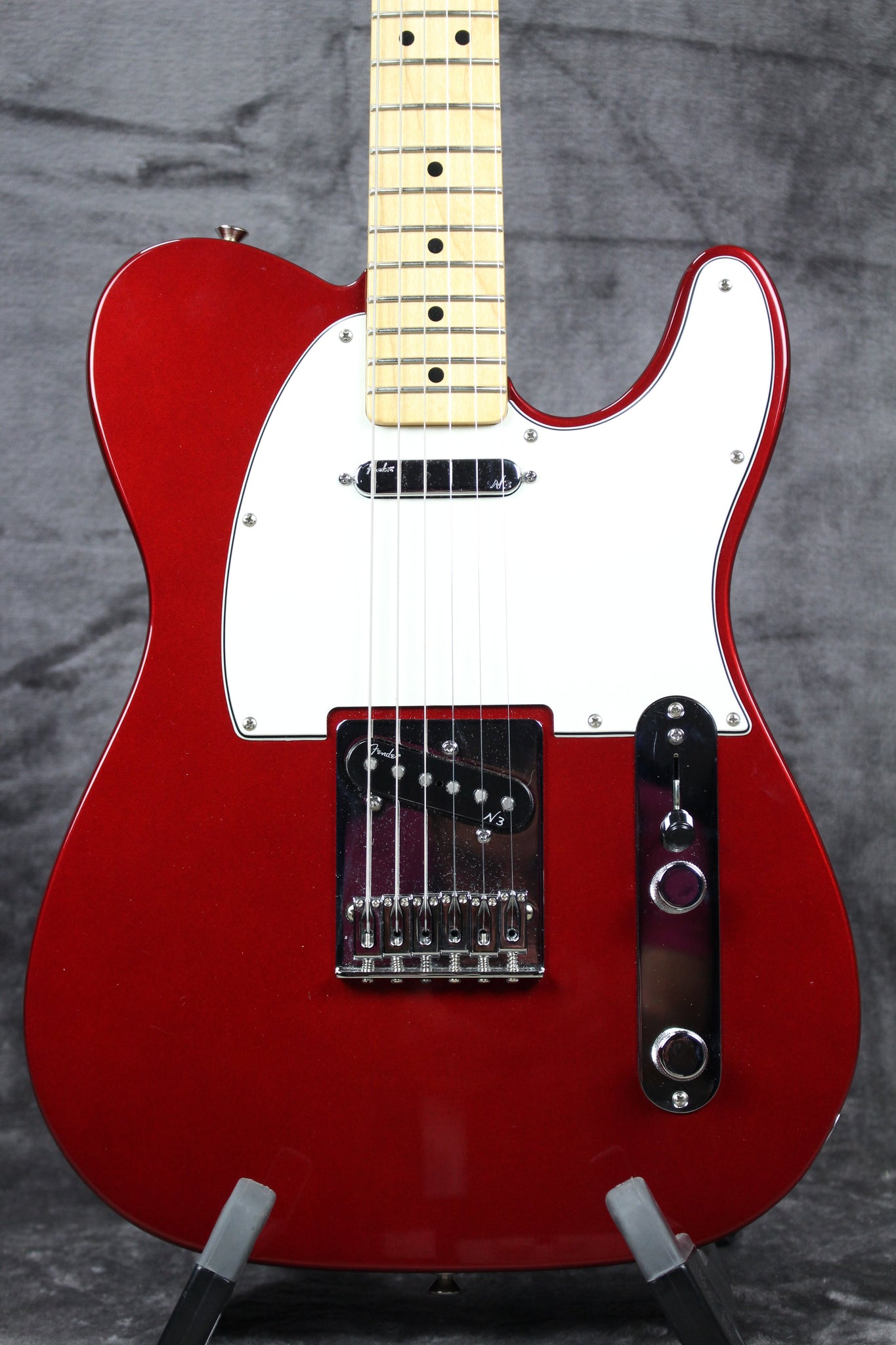 Summary: The Standard Telecaster is about as simple as a guitar can get, and for many players that is the beauty of it. Its single-cut solid-body design was revolutionary in 1950. Like the rest of the Standard Telecaster, the controls are simple and classic. A three-way selector switch controls the pickups, along with one tone knob and one volume knob. The bridge pickup is thin and twangy for that vintage rock sound. The neck pickup is more guttural and reeks of country vibe. This particular guitar has been modded with N3 Noiseless pickups for an even cleaner sound.