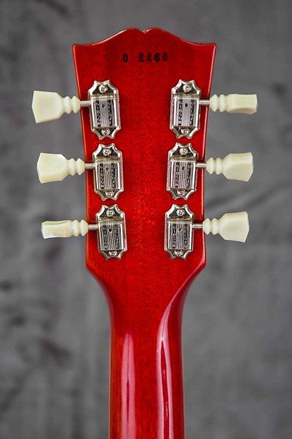 Pickups/Hardware: Two burst-bucker pickups, 2 volume knobs, 2 tone knobs and a 3-way switch. Nickel hardware with Gibson Deluxe tuning keys.