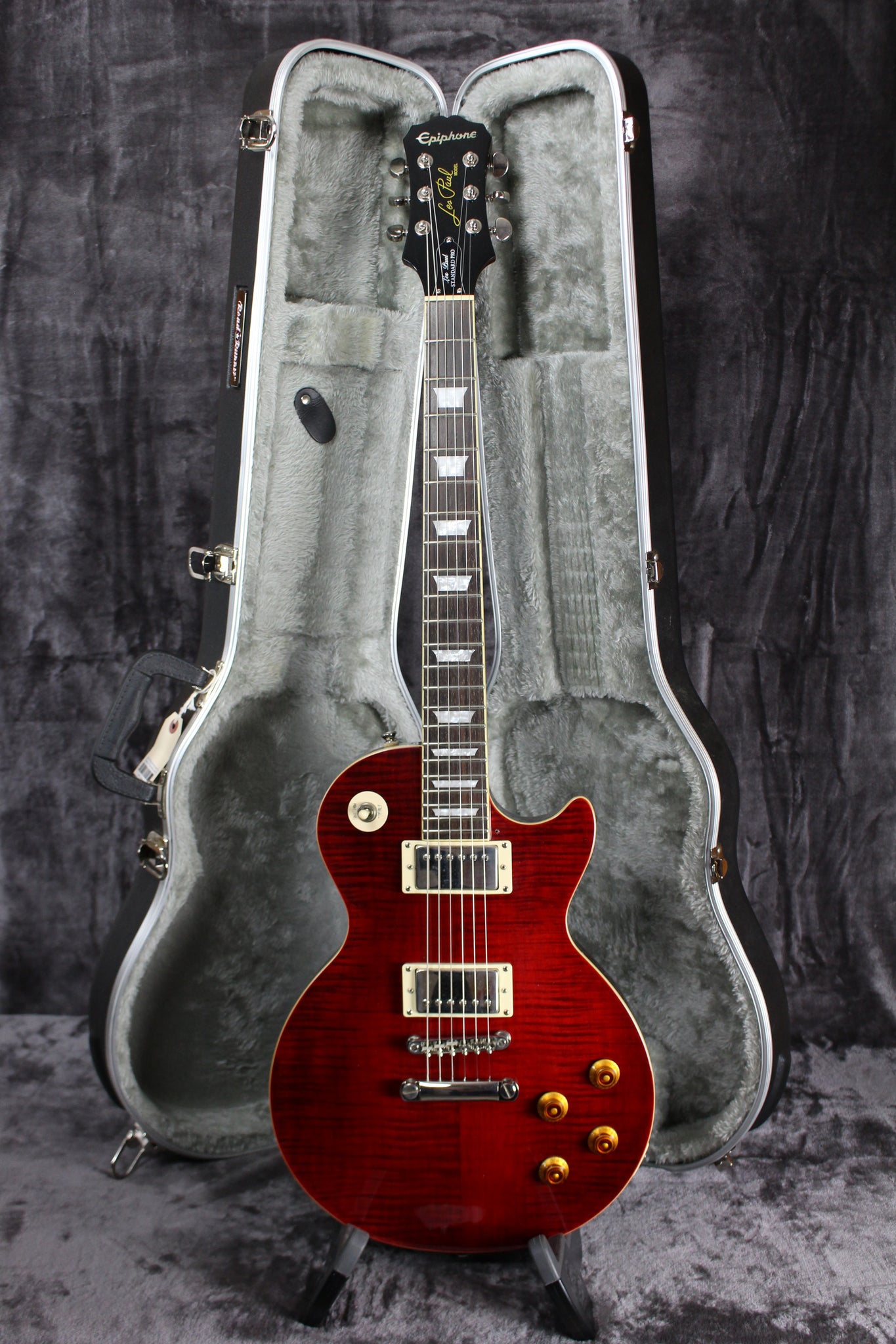 Summary: This 2013 Epiphone Les Paul Standard Pro packs a punch. Sporting ProBucker pickups with coil tapping and a stunning flame maple veneer top, this impressive solid body electric guitar gives you legendary LP tone and playability — as well as jaw-dropping good looks. With the Les Paul Standard Pro, you can play nuanced rhythm parts with a chiming single-coil setting on the neck pickup, then launch into an aggressive humbucking lead. Serious tonal versatility.