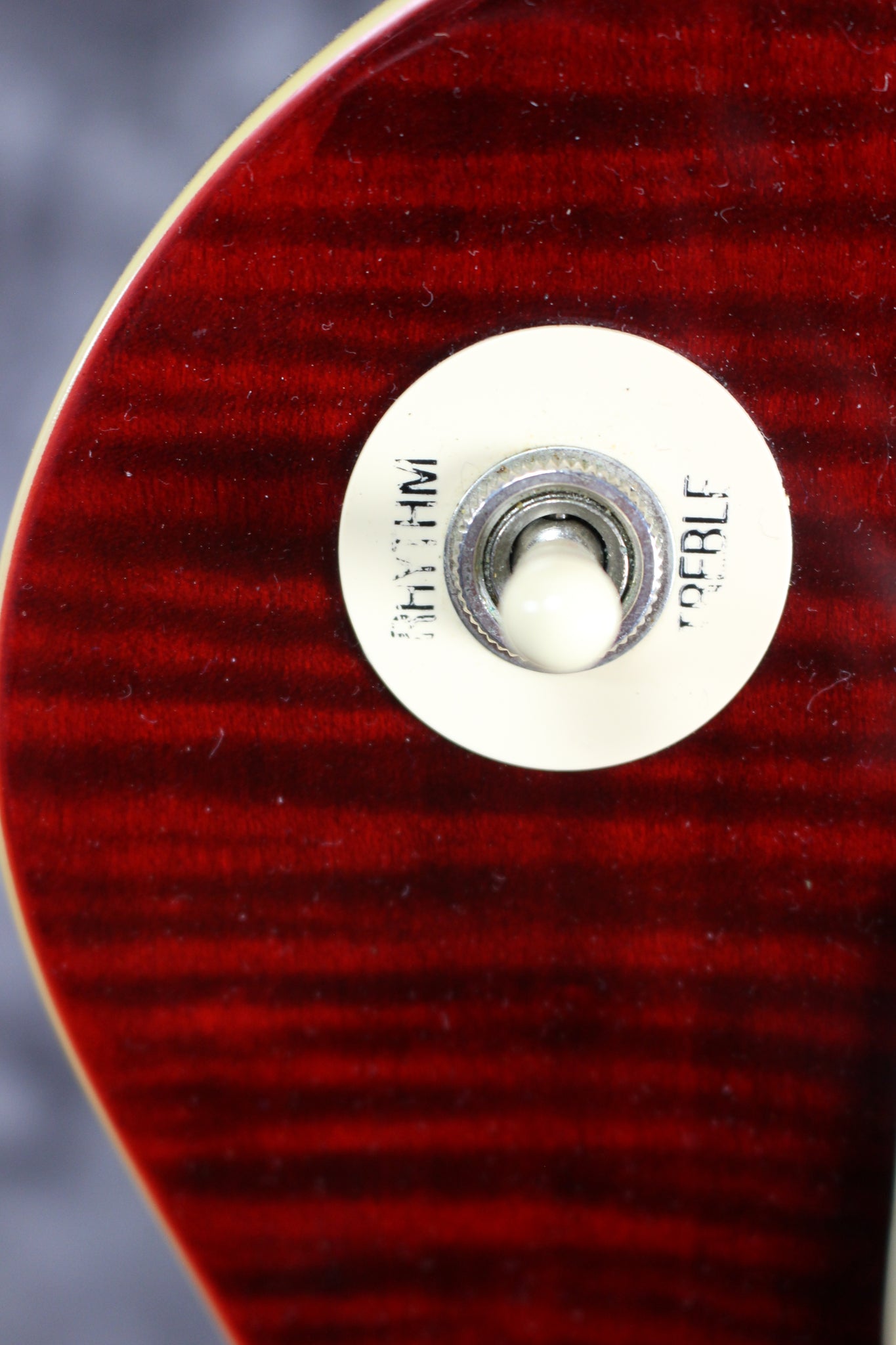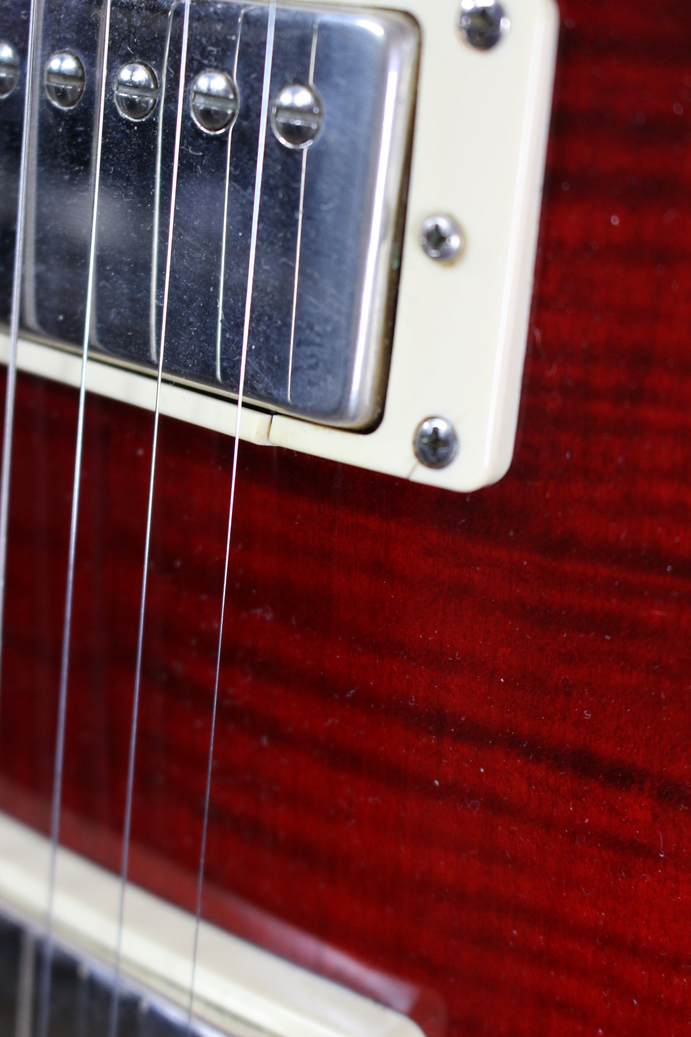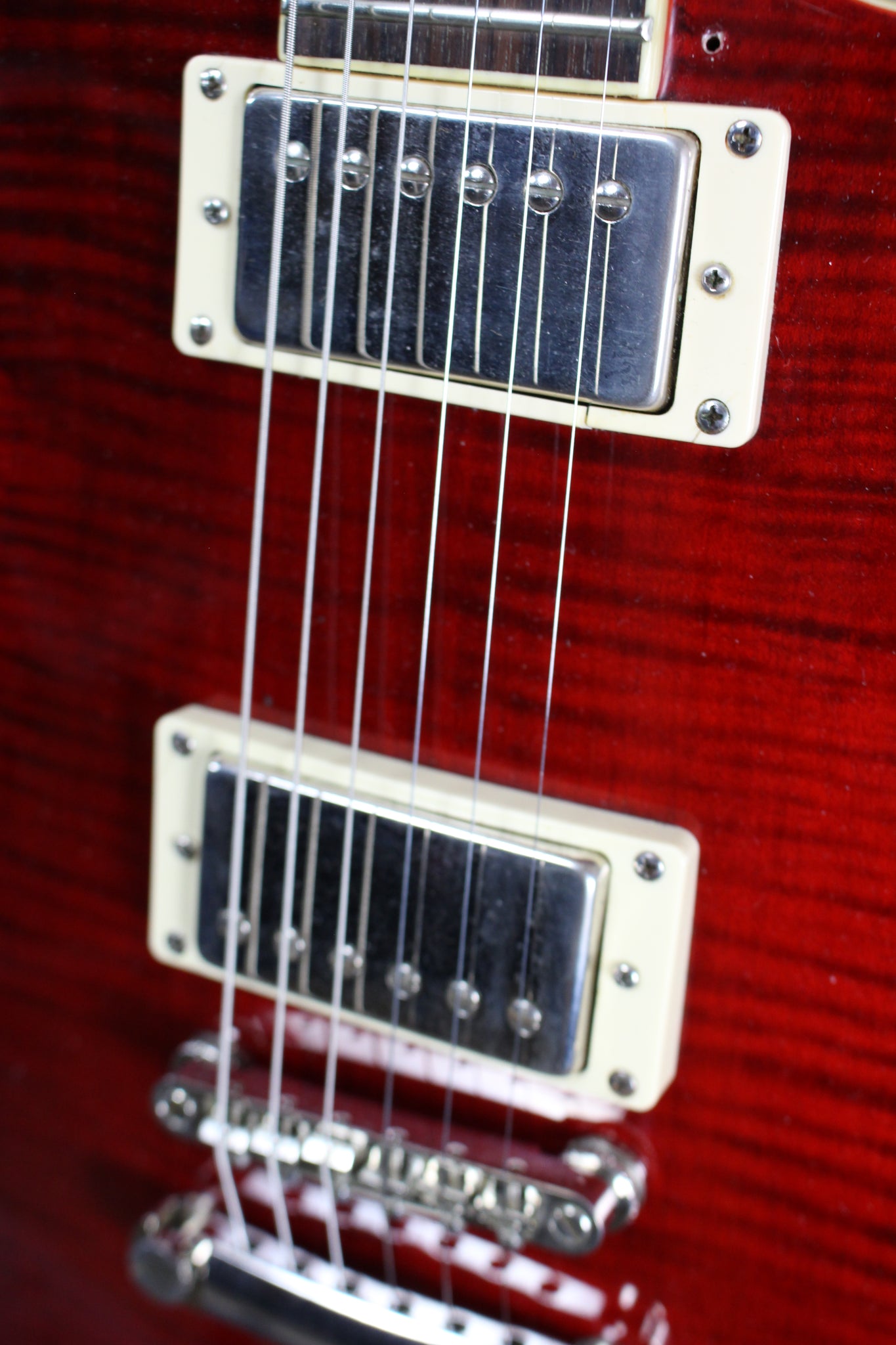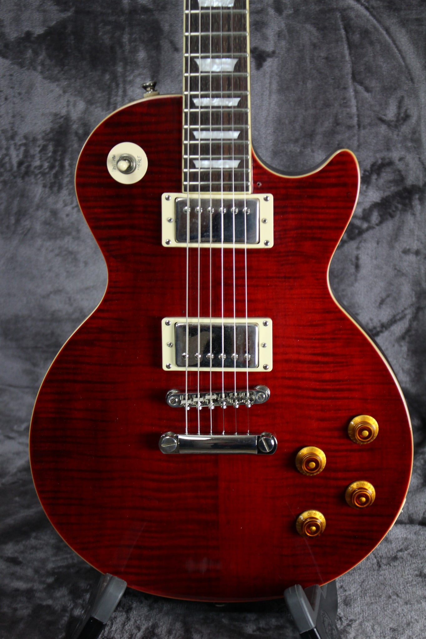 Body: Mahogany with flame Maple top in Cherry finish.