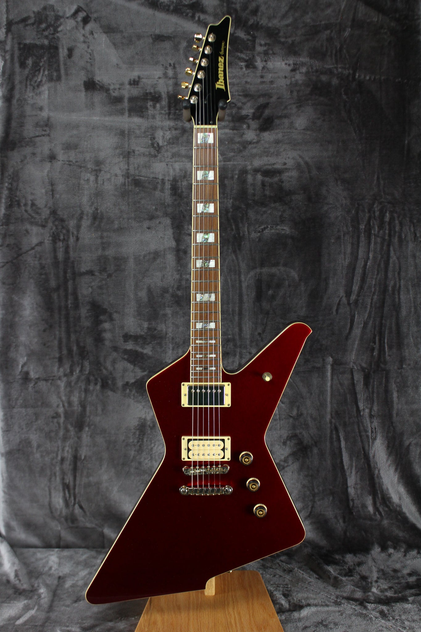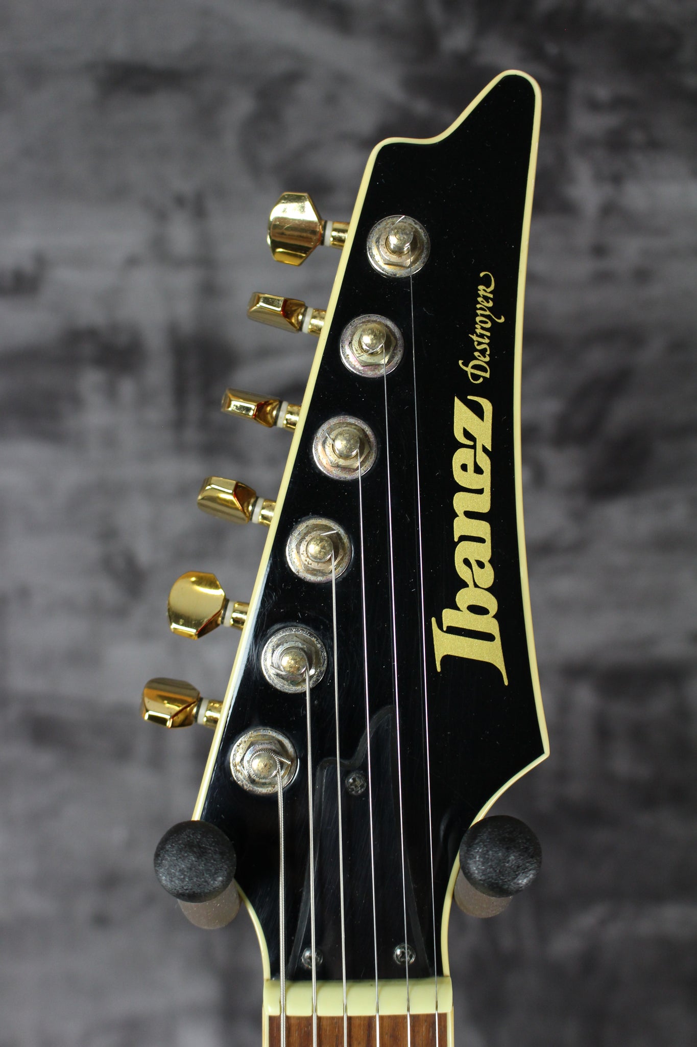 Summary: This 2013 Ibanez DT2G Destroyer features a mahogany body with cream binding mated to a set-in mahogany neck with a 22-fret rosewood fingerboard with binding and split block position markers. Components include a pair of DiMarzio humbucking pickups with individual volume controls and coil-split functionality to simulate a single-coil tone, a fixed bridge and tailpiece and gold Sure Grip III knobs.