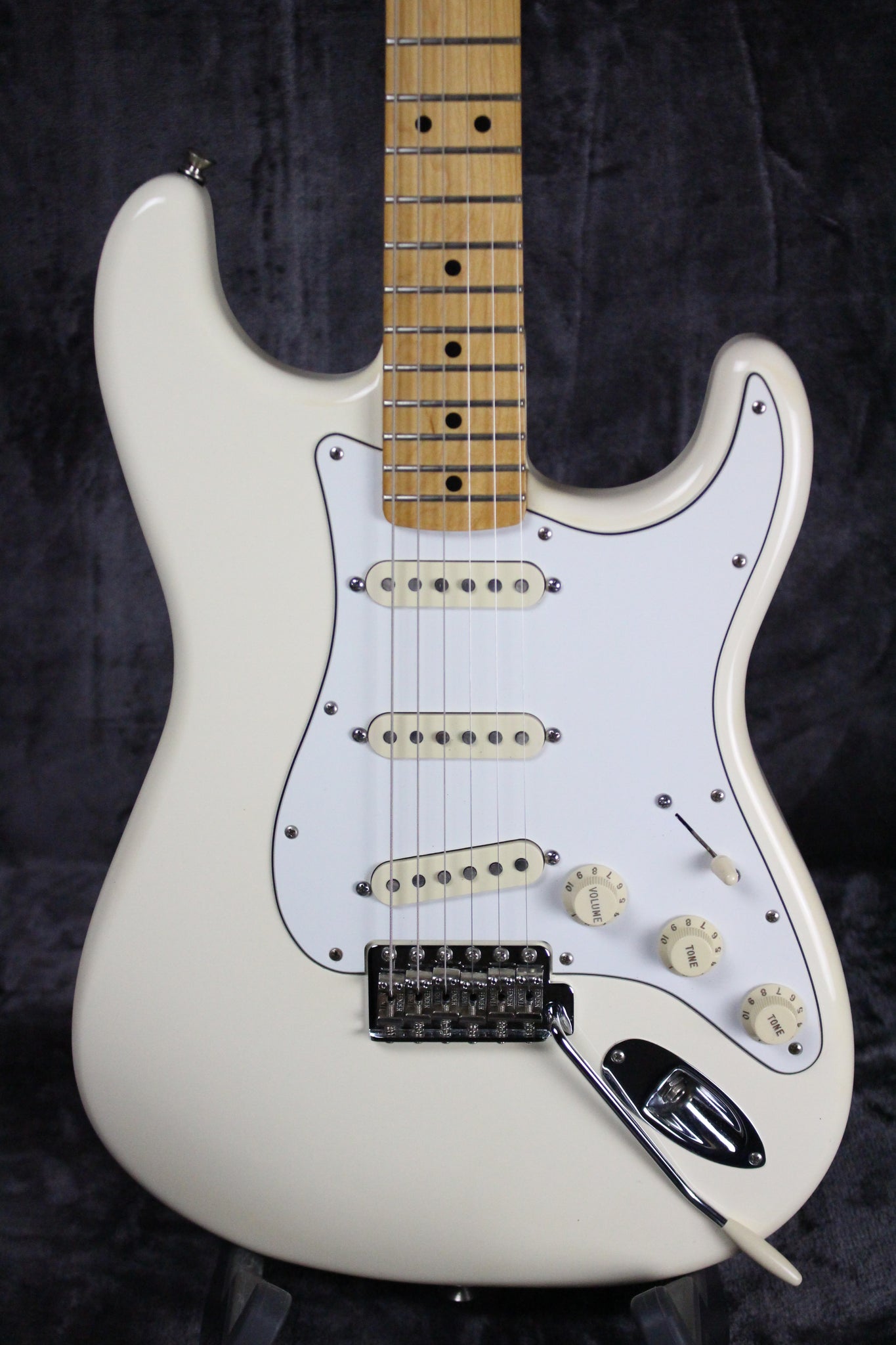 Pickups/Hardware: Pure Vintage '65 Gray-Bottom Single-Coil Strat pickups, vintage style tuning keys, 6-Saddle Vintage-Style Synchronized Tremolo bridge, synthetic bone nut.