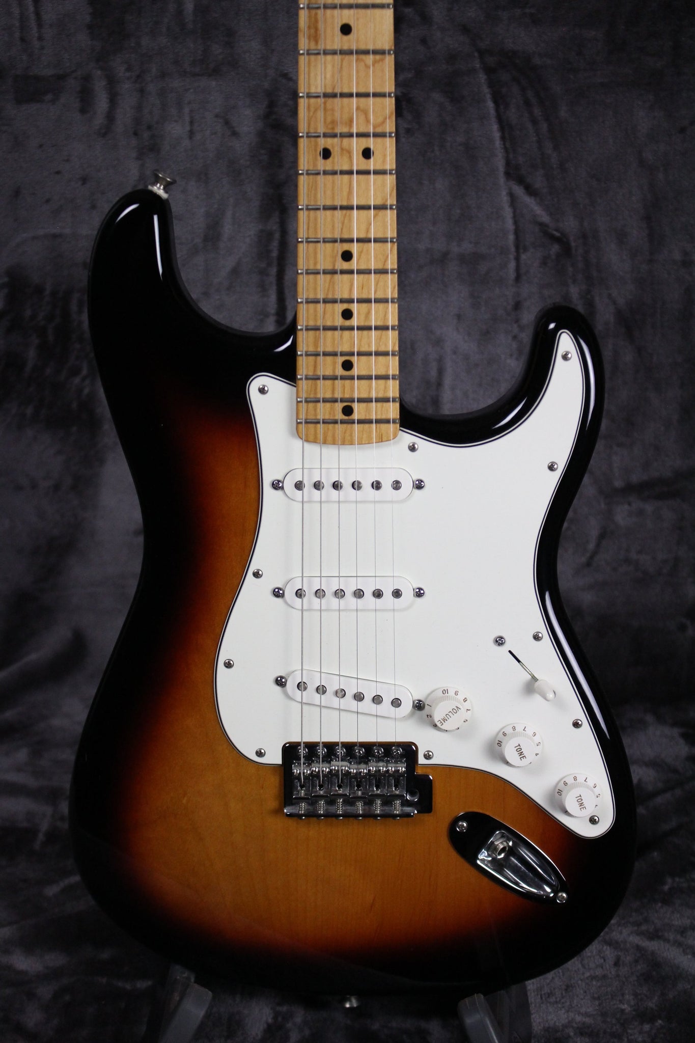 Pickups/Hardware: Standard Single-Coil Strat pickups, Standard Cast/Sealed tuning keys, 6-Saddle Vintage-Style Synchronized Tremolo bridge, White Plastic knobs, Synthetic Bone nut.