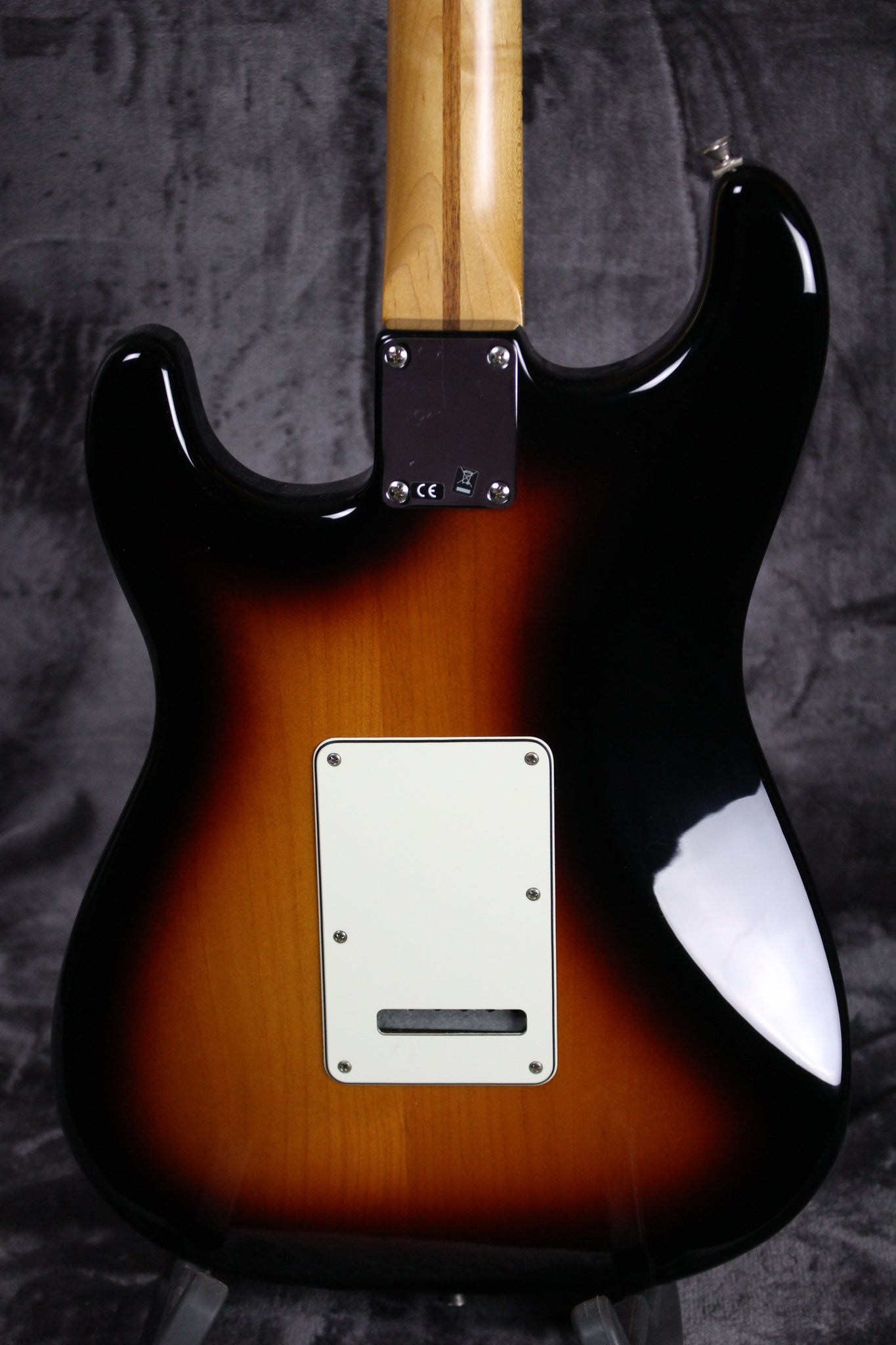 Summary: This 2016 Fender Standard Stratocaster guitar offers legendary Fender tone with classic styling. Features include three single-coil pickups, synchronized tremolo with high-mass bridge block, tinted neck, shielded body cavities, medium jumbo frets, parchment pickguard and '70s-style headstock logo