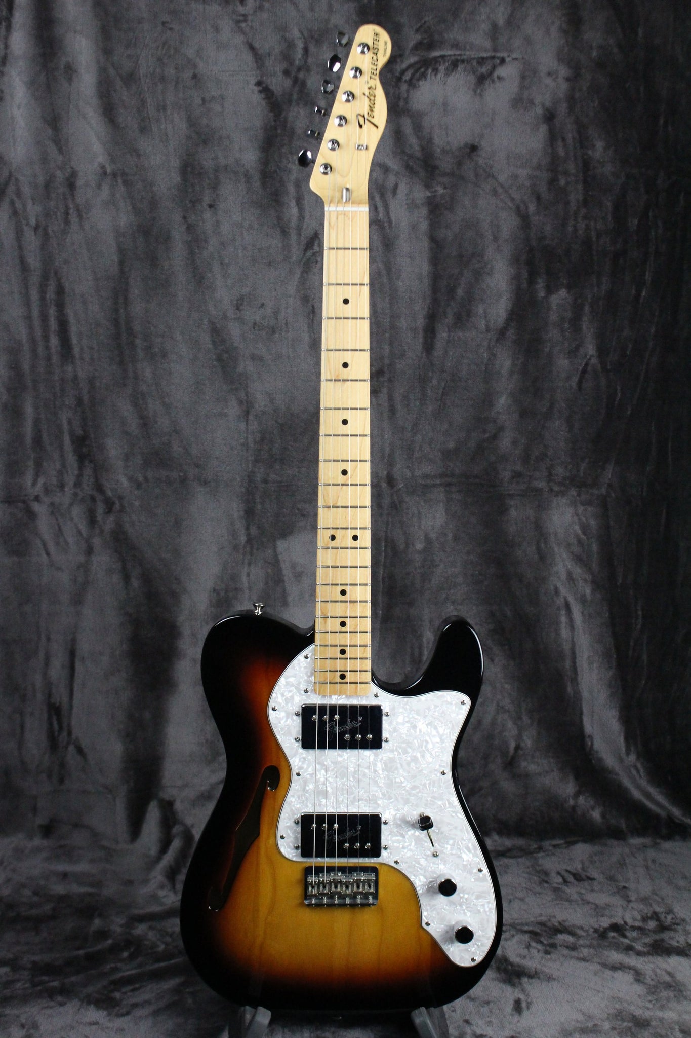Summary: 1972 was a magical year for the Telecaster. With several new designs, the Telecaster was available with more options than ever before. The '72 Tele Thinline features a warmer and rounder, semi-hollow body, "U" shape maple neck, bullet truss rod, '70s vintage hardtail strings-through Strat bridge, three-bolt neckplate, and two Fender "Wide Range" humbucking pickups.