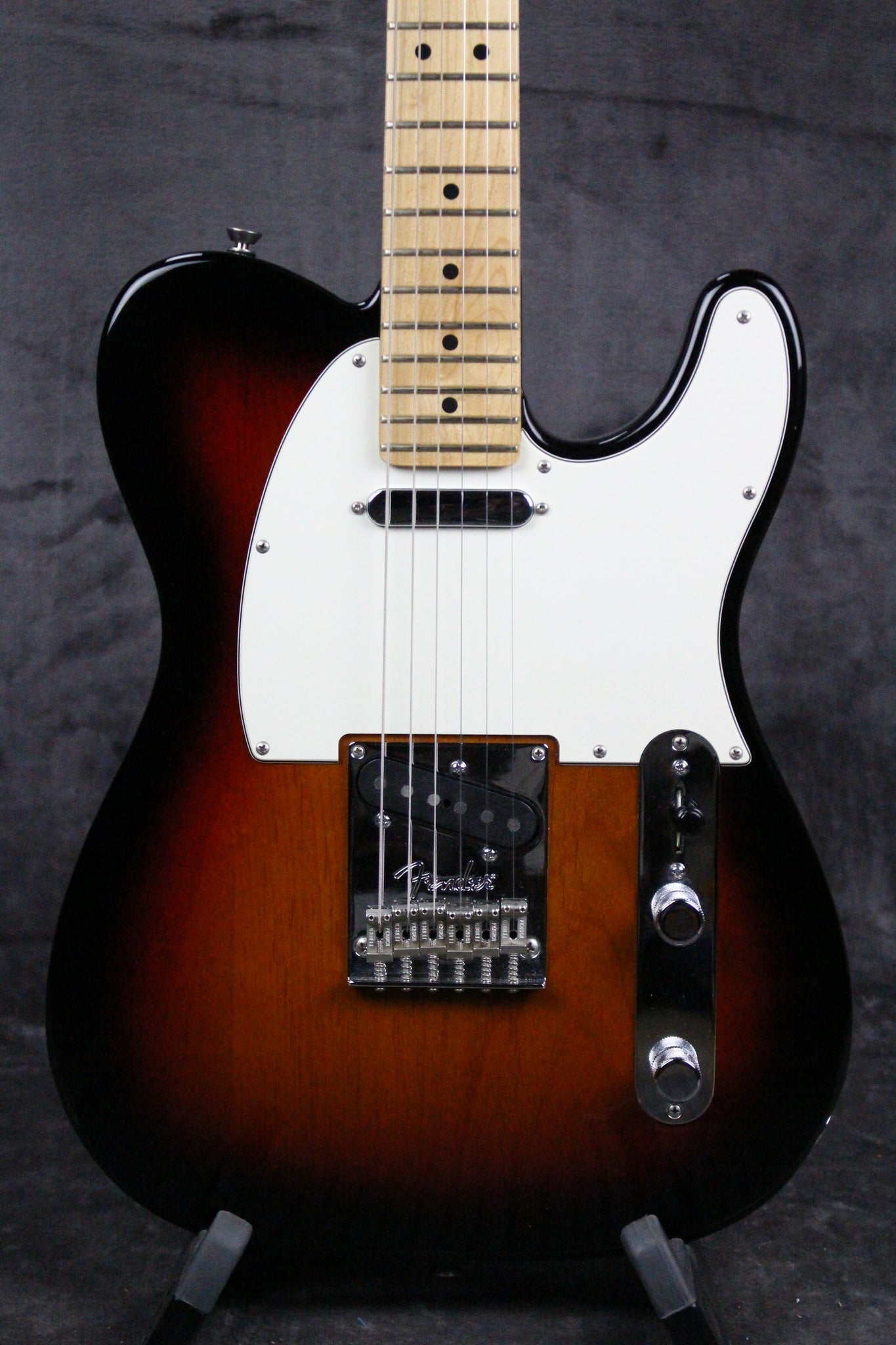 Pickups/Hardware: Bent steel saddles, Fender six in line tuning keys, American Telecaster single coil pickups, master volume knob/master tone knob, 3-way pickup selector, chrome hardware, 3-ply pickguard.