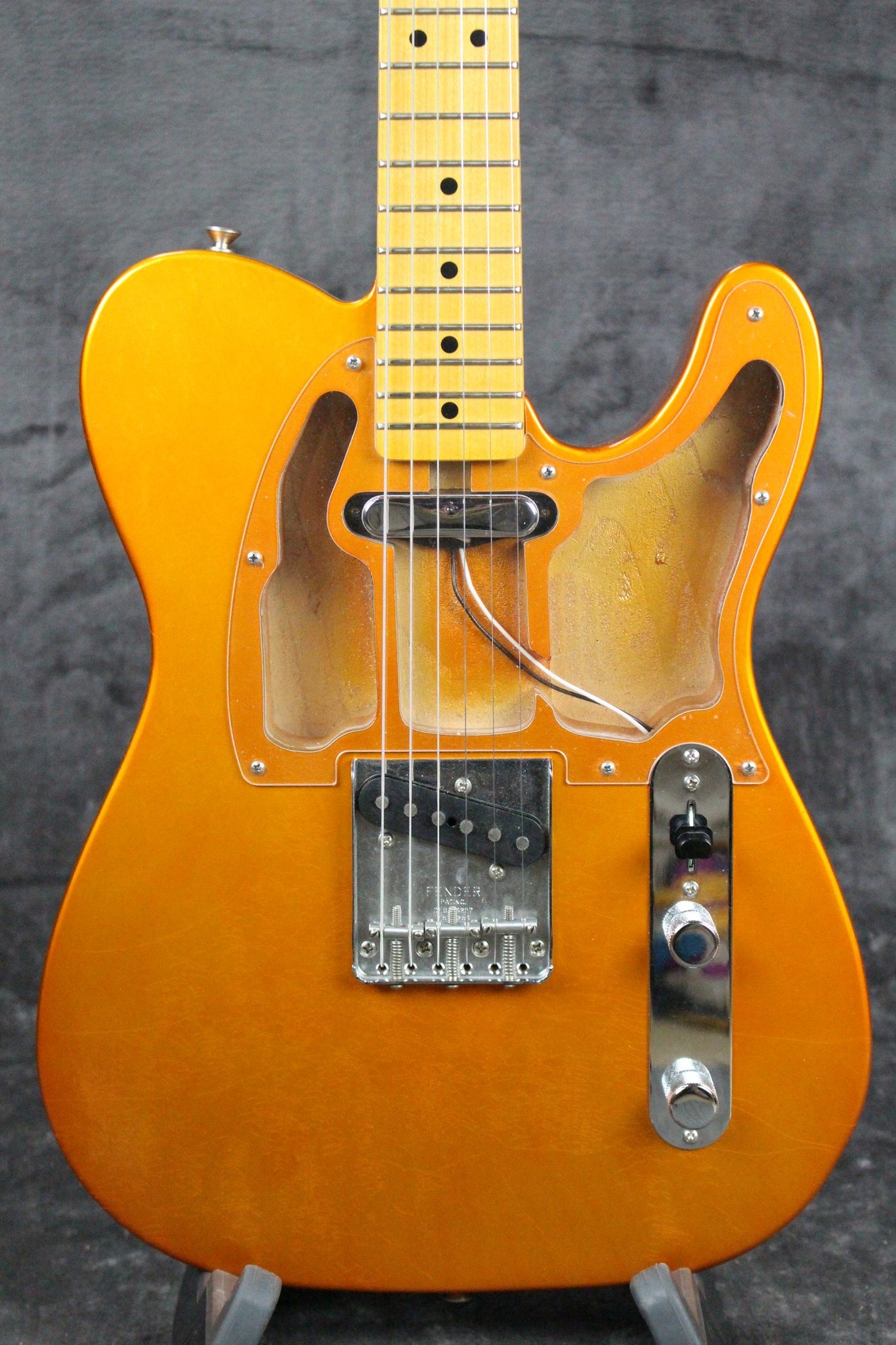 Summary: Profound social and cultural change was sweeping the nation in 1967, and by coincidence or design, that year also marked an imaginative, inventive period for post-CBS Fender. The recipient of numerous fresh ideas turned out to be the company’s first solid body electric Spanish guitar—the Telecaster. One of these new concepts was to make the Telecaster lighter. The first primitive attempts built in the summer of 1967 are known today as “Smuggler’s Teles”. While Smuggler’s Teles appear outwardly identical to regular ones, a few light taps on the pickguard foretell something different underneath. Removing the guard reveals three rather large cavities where part of the ash body was removed. This telecaster is from Fender’s Custom Shop and is truly an amazing instrument to see in person. The ash body is light and resonant. The 60’s style oval “C” shaped neck has a gloss finish and feels great in your hands.