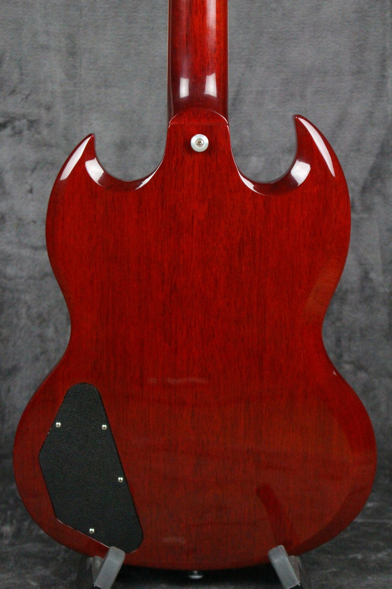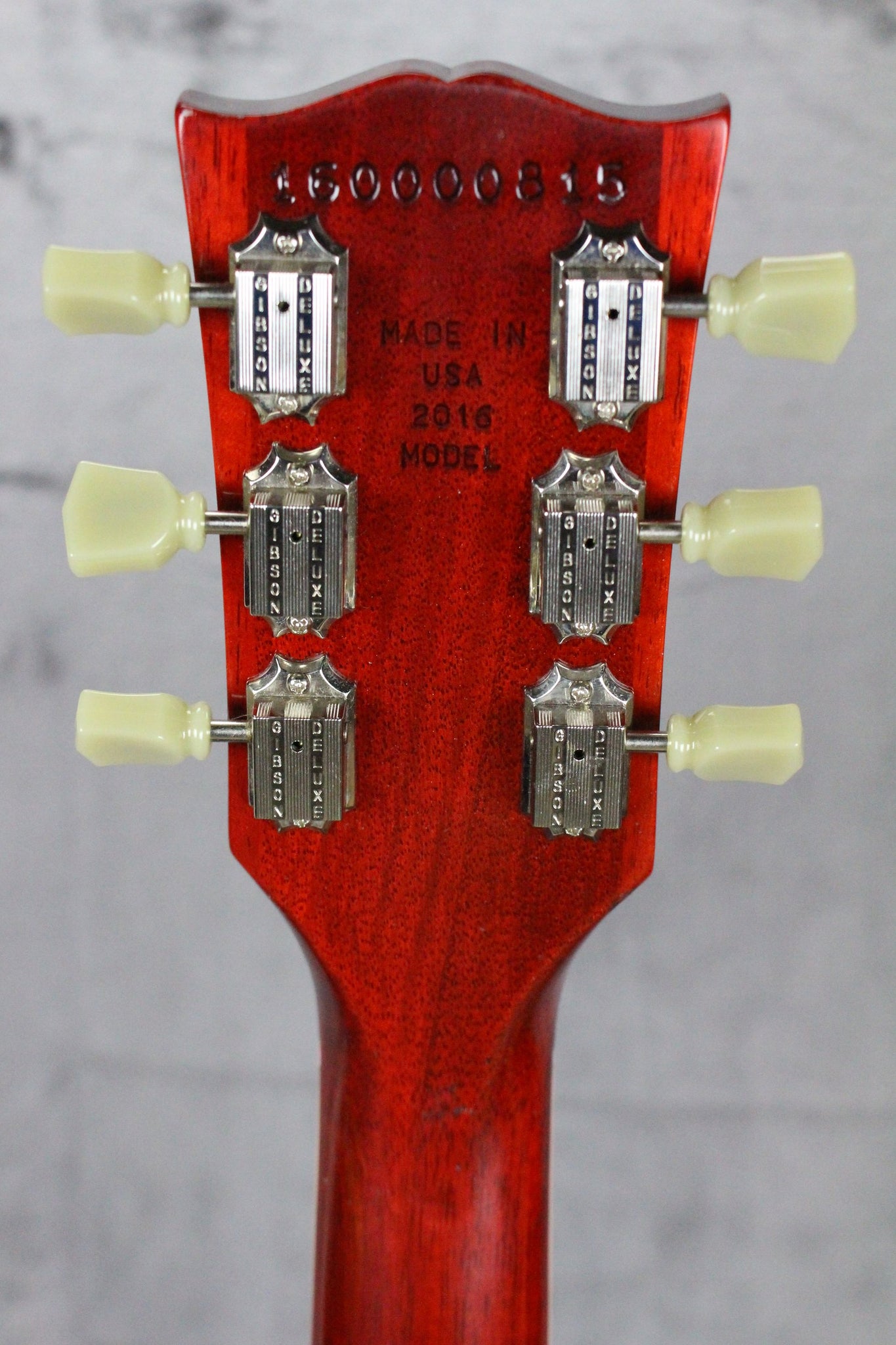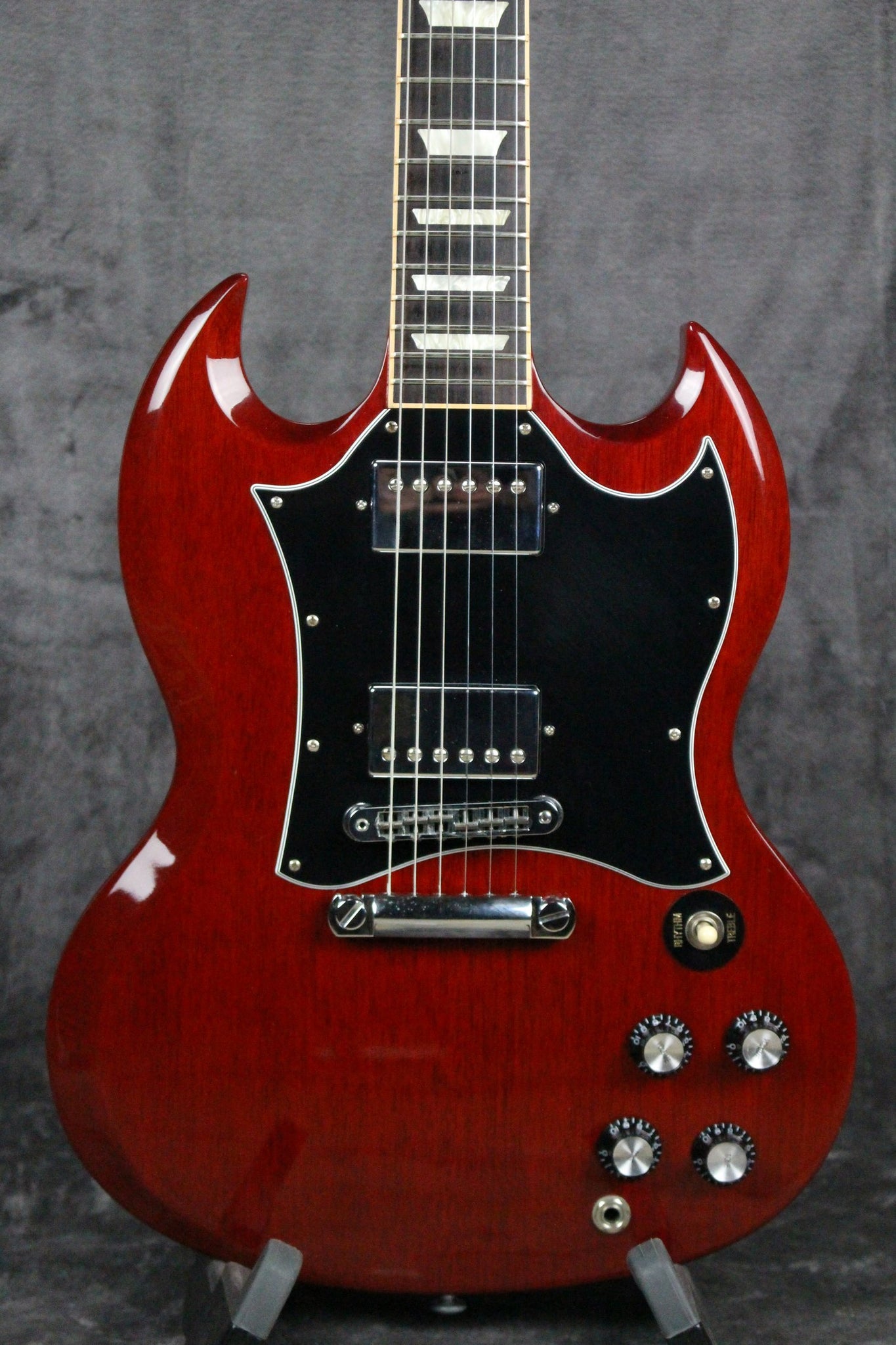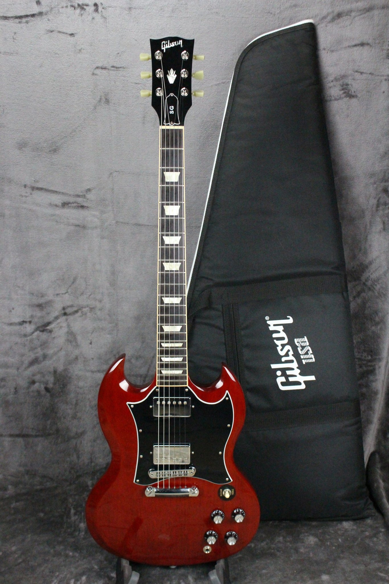 Summary: The Gibson SG Standard, famous for its comfortable, fast-action neck, is a perennial favorite among us here at Empire Guitars. The SG Standard 2016 T embodies all the tone, feel, and look of the original rendition of this legendary guitar, all wrapped into a design that remains one of the most versatile guitars ever. A rounded profile mahogany neck, bound rosewood fingerboard, and a solid mahogany body provide the backbone for singing sustain. The 490R and 498T pickups provide the power to drive. It has a five-ply, full-face pickguard, two volume/two tone controls, and a three-way pickup selector. This SG Standard T has been gigged with but cared for and it still has a ton of life left in it.
