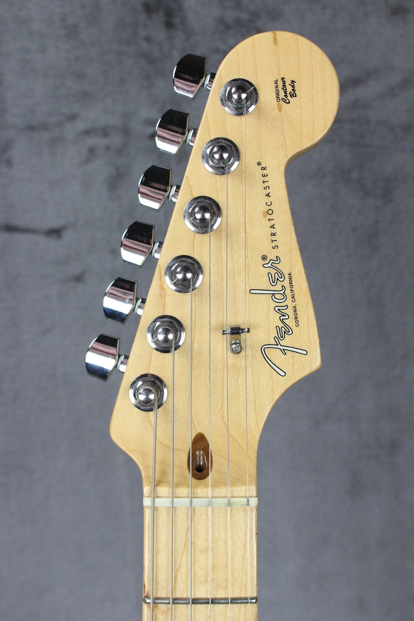 Pickups/Hardware: Three V-Mod single coil pickups, one volume knob/two tone knobs, five way pickup selector, 2-point synchronized tremolo bridge with bent steel saddles and a pop-in tremolo arm, Nickel/chrome hardware, Fender cast/sealed staggered tuning keys, aged white plastic control knobs.