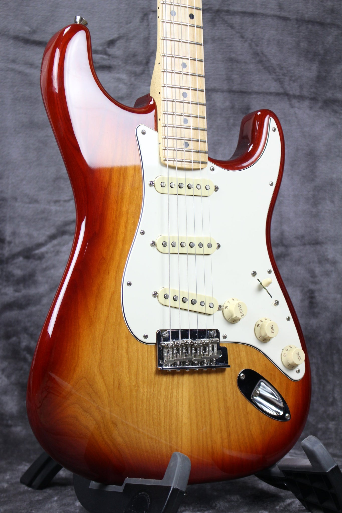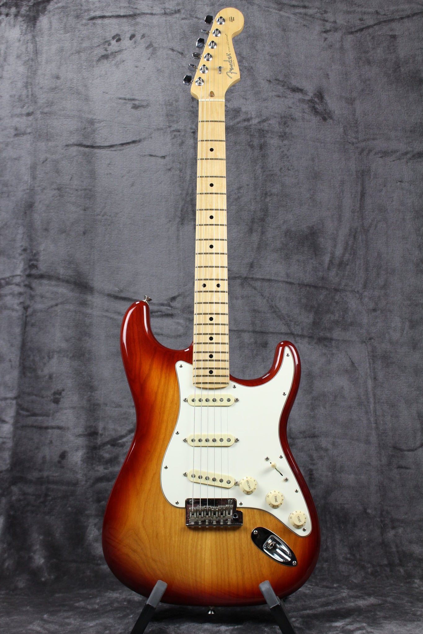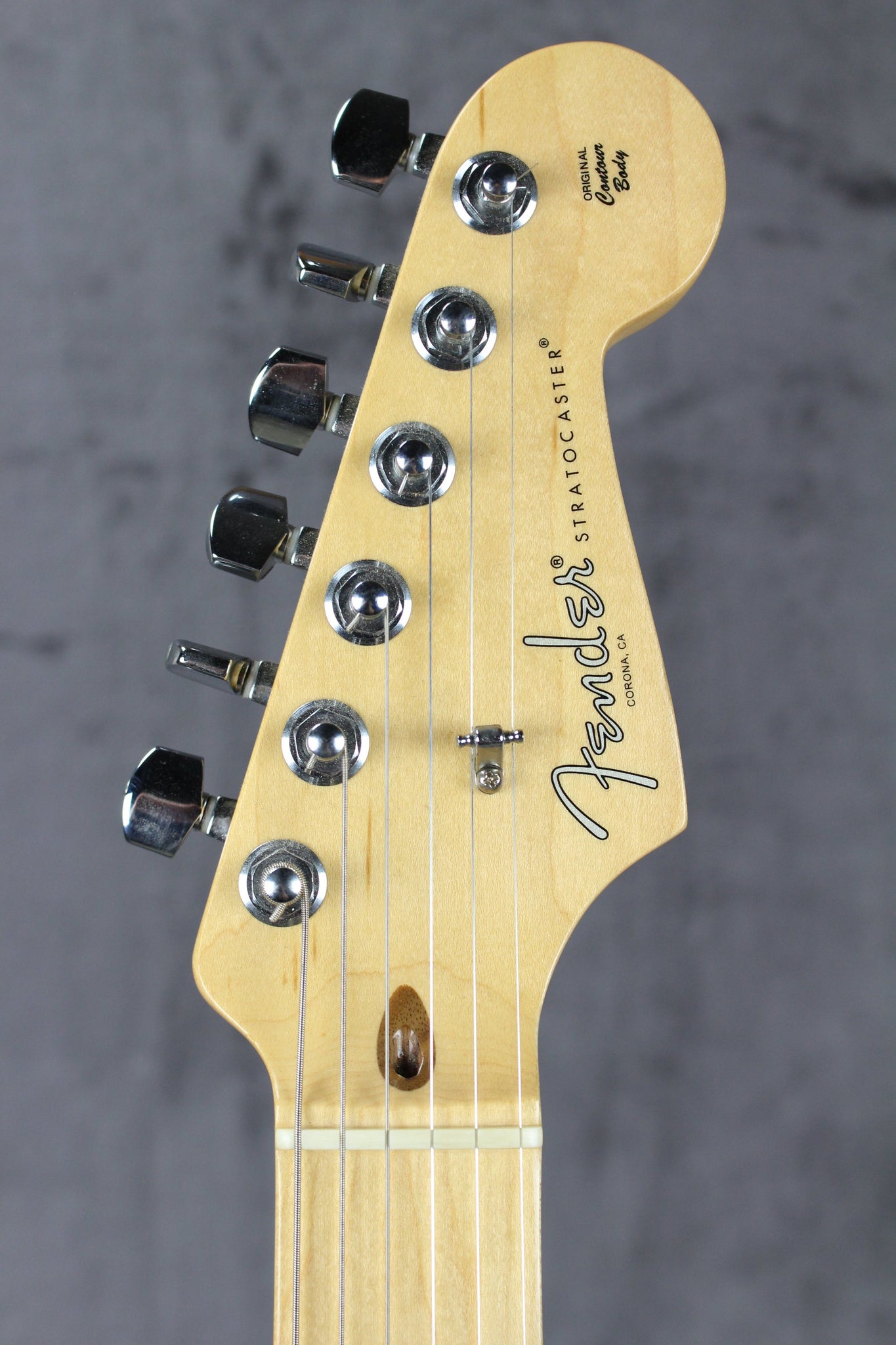 Summary: The American Standard Stratocaster solidbody electric guitar is part of the evolution of an American classic, priming it for the 21st century. The ash body with a maple neck and fingerboard stays true to the original recipe for classic tone. This American Standard Strat packs a very different trio of pickups - Custom Shop Fat 50s single-coils, previously only reserved for Fender's top-line Custom Shop guitars! These premium pickups pack all the bark and bite that made the Strat sound famous. You'll also love the classic Fender touches and fan-favorites like hand-rolled fingerboard edges, staggered tuning machines, and aged knobs and pickups covers on the Fender American Standard Stratocaster solidbody electric guitar. This is great guitar that plays wonderful up and down the neck.