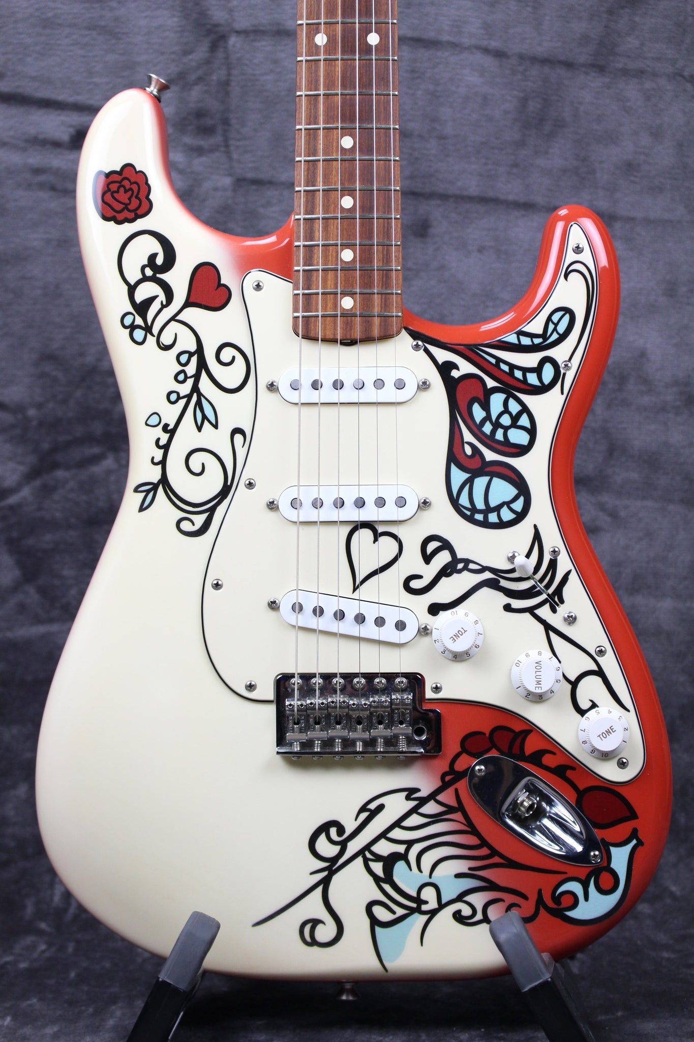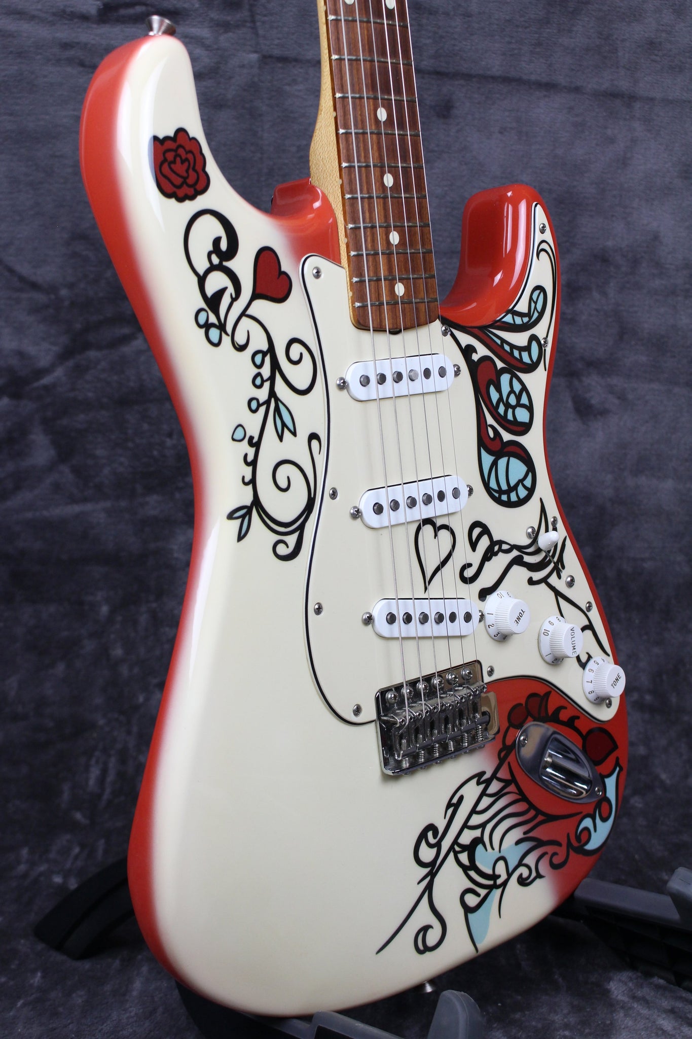 Summary: Jimi Hendrix took the world by storm with his incredible Monterey Pop Festival performance, which he concluded with the sacrificial burning of his now-iconic hand-painted Stratocaster. Destroyed during the fiery culmination of his set, this one-of-a-kind guitar survived only in photos and film. To celebrate the 50th anniversary of this milestone in music history, Fender created the limited-edition Jimi Hendrix Monterey Stratocaster. Summoning the same fiery magic Jimi evoked at the Monterey Pop Festival, the Fender Limited Edition Jimi Hendrix Monterey Stratocaster is a faithful recreation of the guitar that set the world on fire and altered the course of rock n' roll.