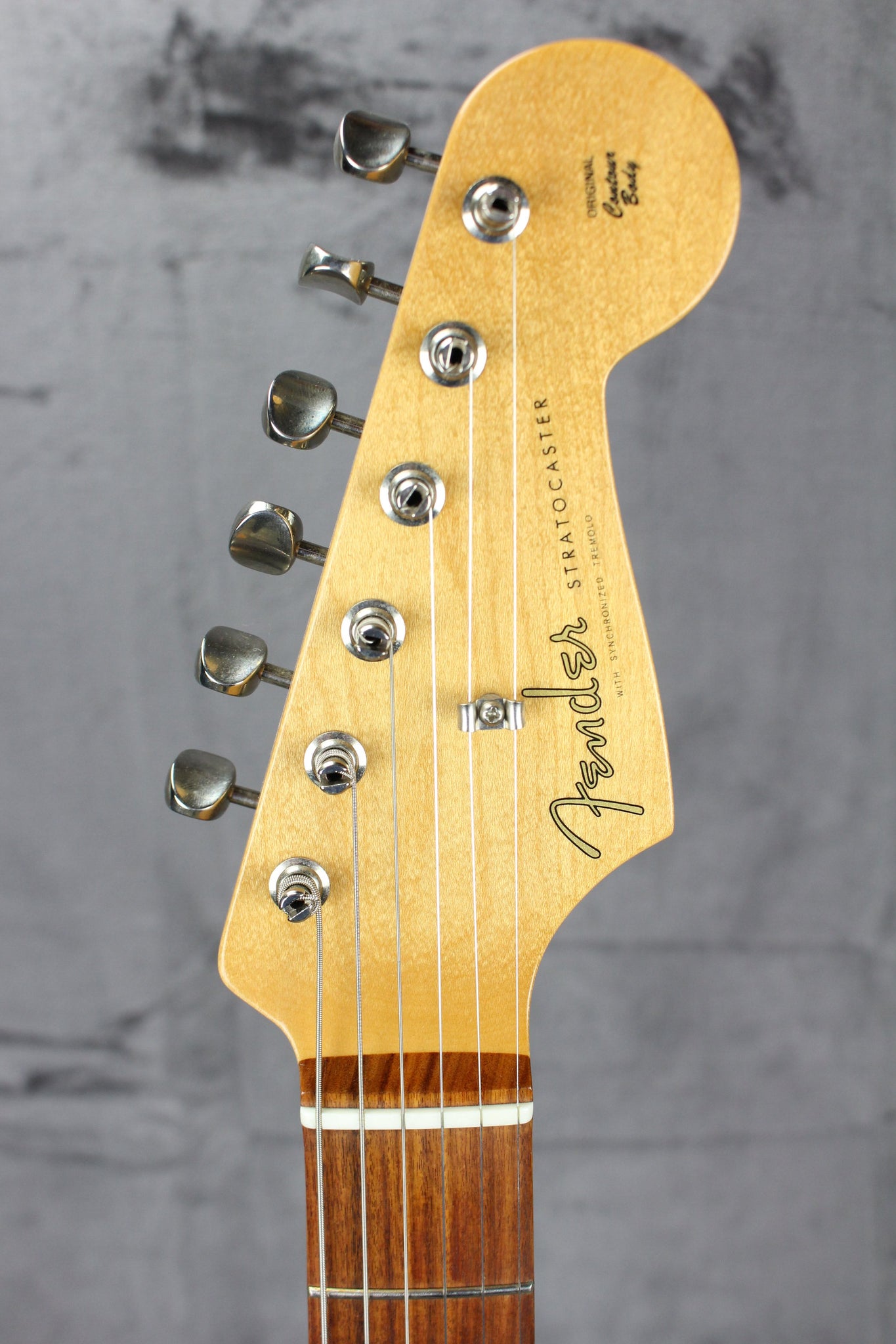 Neck: Comfortable “C” shape, maple with Pau ferro fingerboard, vintage 7.25” radius, 21 vintage style frets, aged white dot inlays, synthetic bone nut, 1.650” nut width, 25.5” scale length.