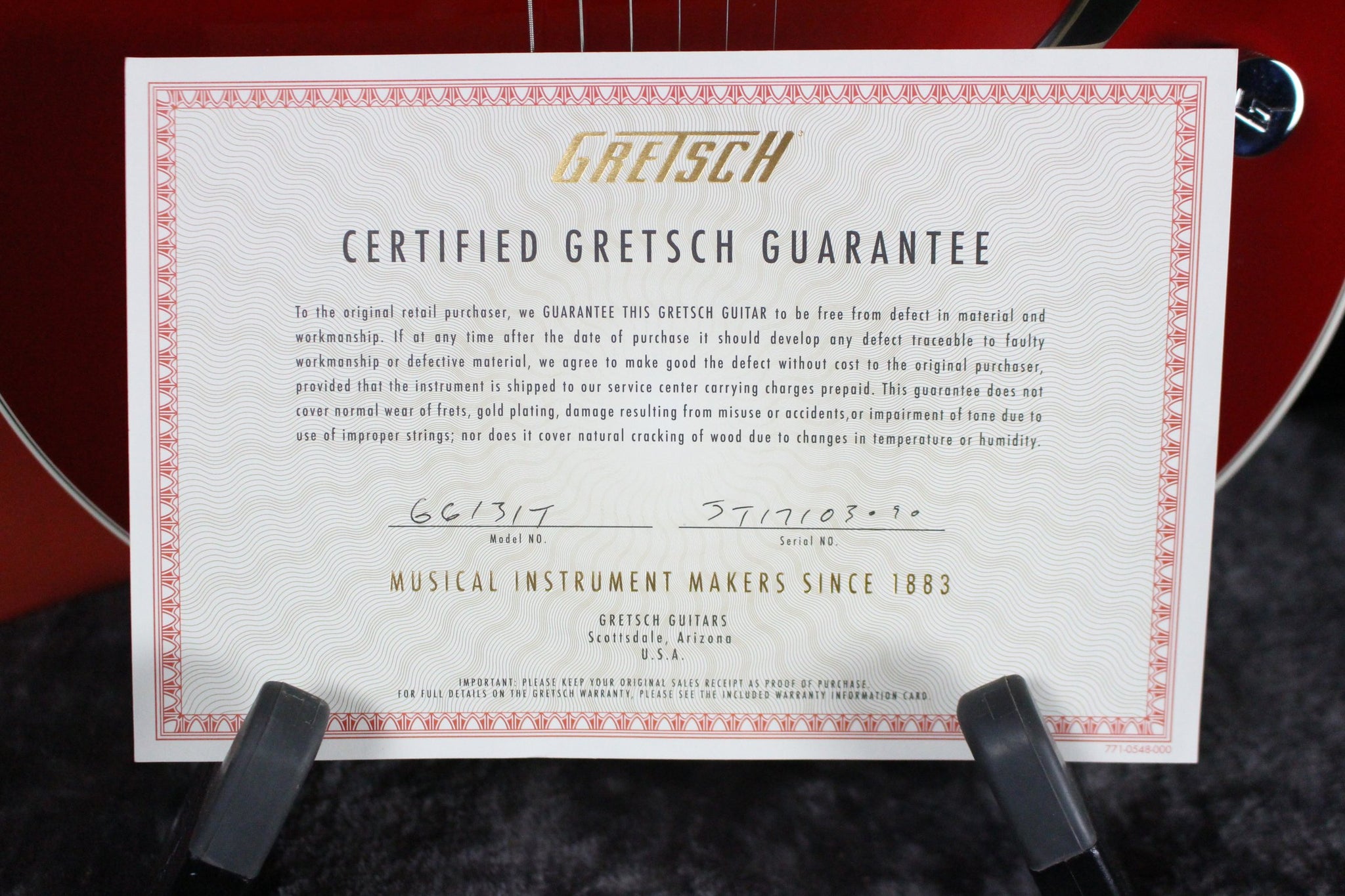 Pickups/Hardware: Two TV Jones Power’Tron pickups, Volume 1. (Neck Pickup), Volume 2. (Bridge Pickup), Master Volume, Pinned Rosewood-based Adjusto-Matic Bridge, Bigsby B3C Vibrato Tailpiece with Gretsch Logo, Gotoh Locking Tuners, Synthetic Bone nut.